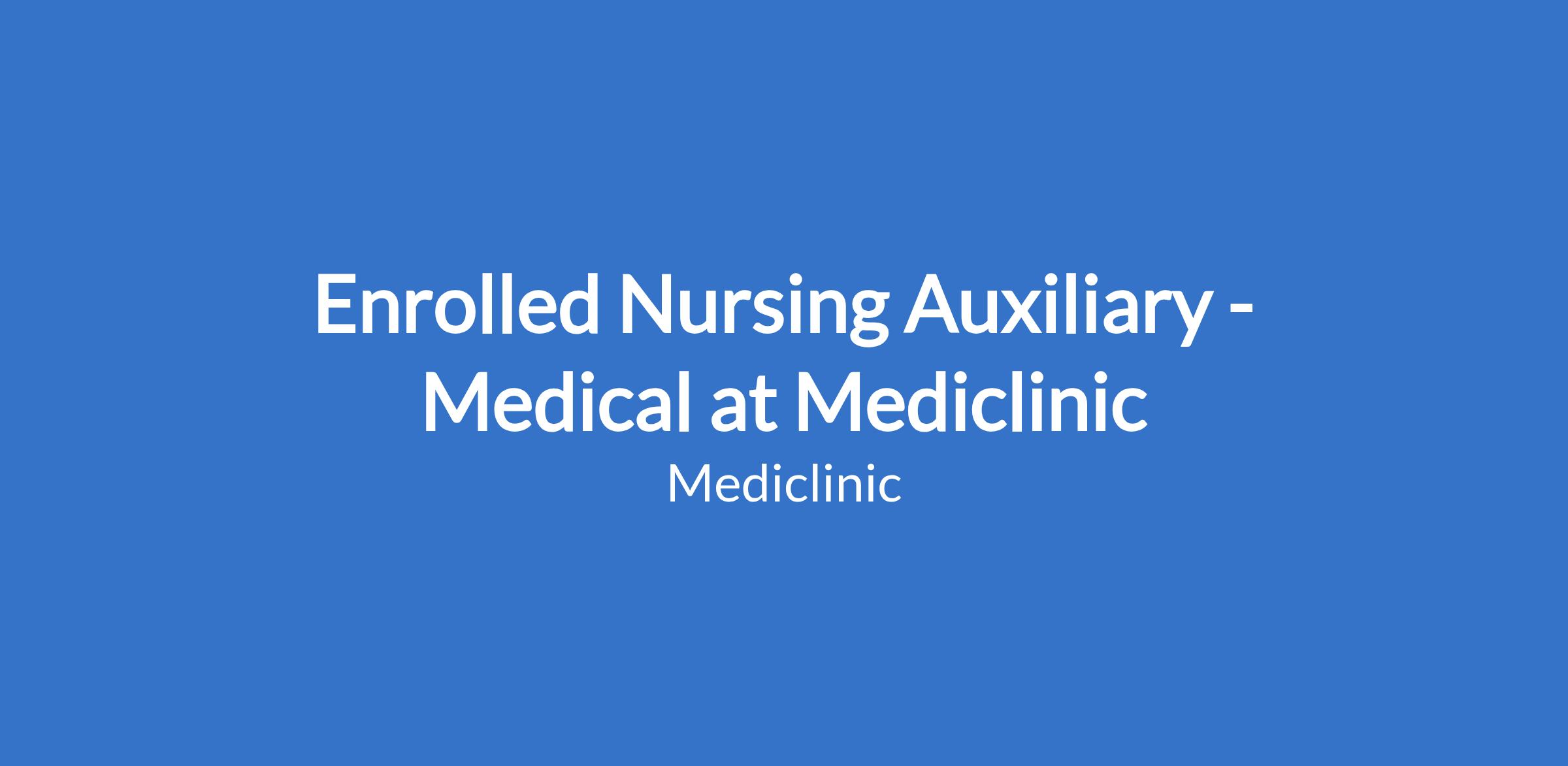 Enrolled Nursing Auxiliary - Medical at Mediclinic