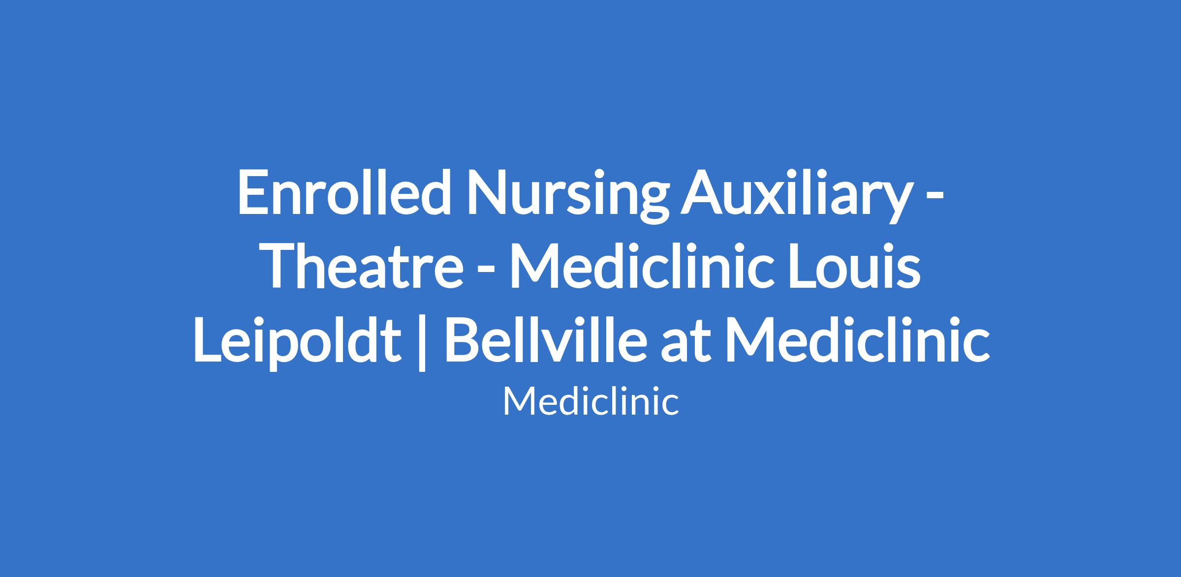 Enrolled Nursing Auxiliary - Theatre - Mediclinic Louis Leipoldt | Bellville at Mediclinic