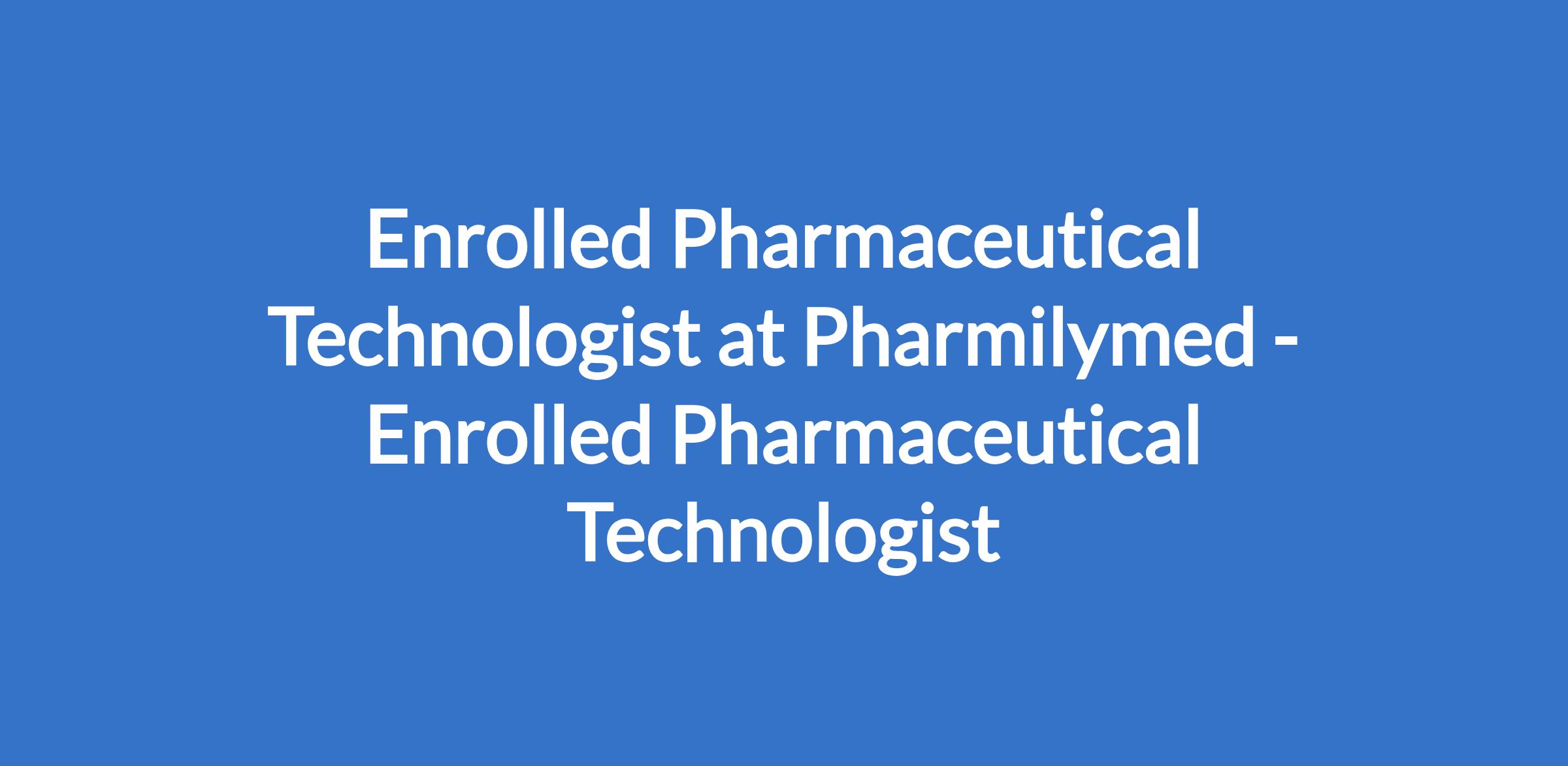 Enrolled Pharmaceutical Technologist at Pharmilymed - Enrolled Pharmaceutical Technologist