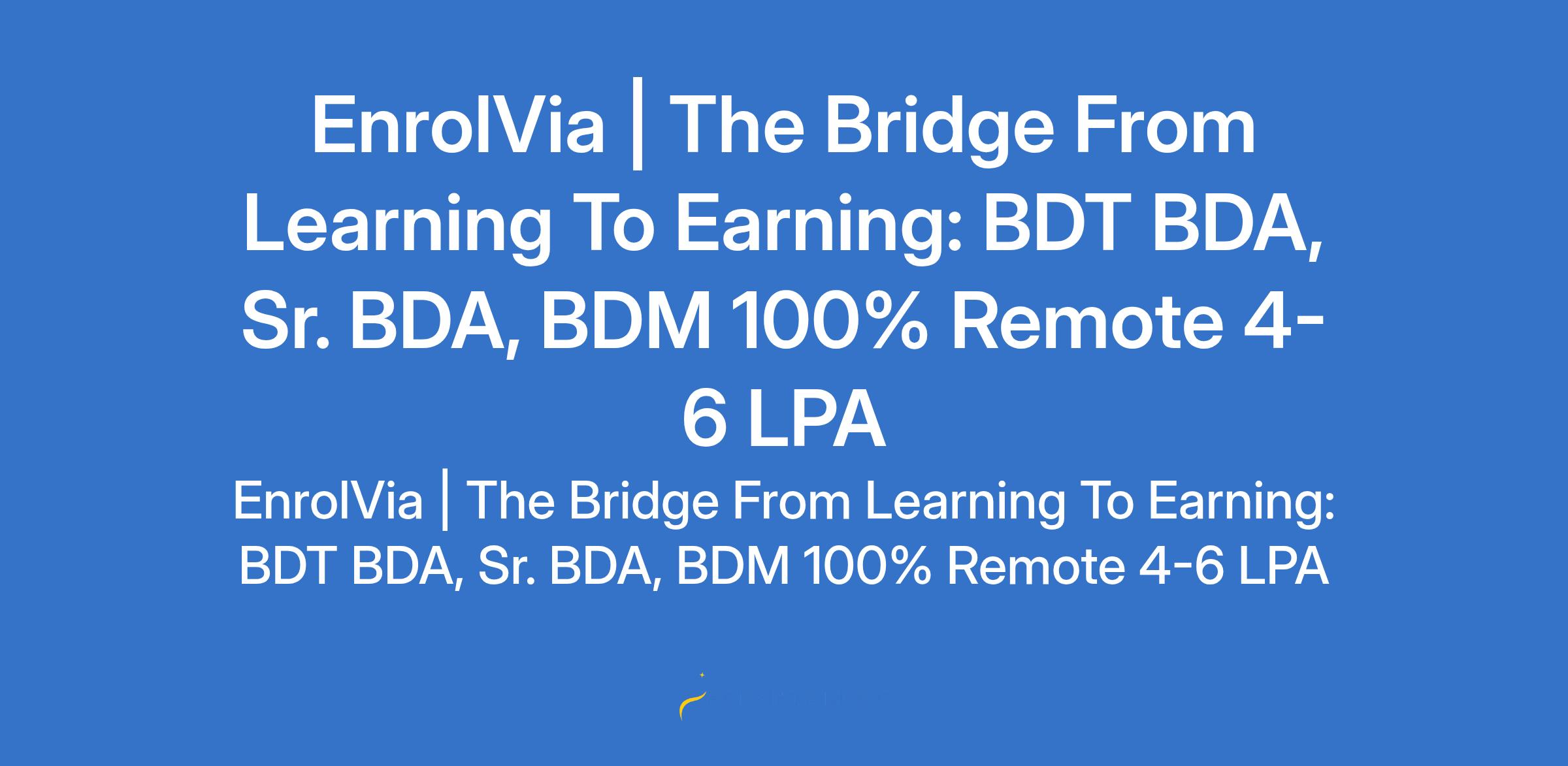 EnrolVia is hiring: BDA, Sr. BDA, BDM 100% Remote 4-6 LPA