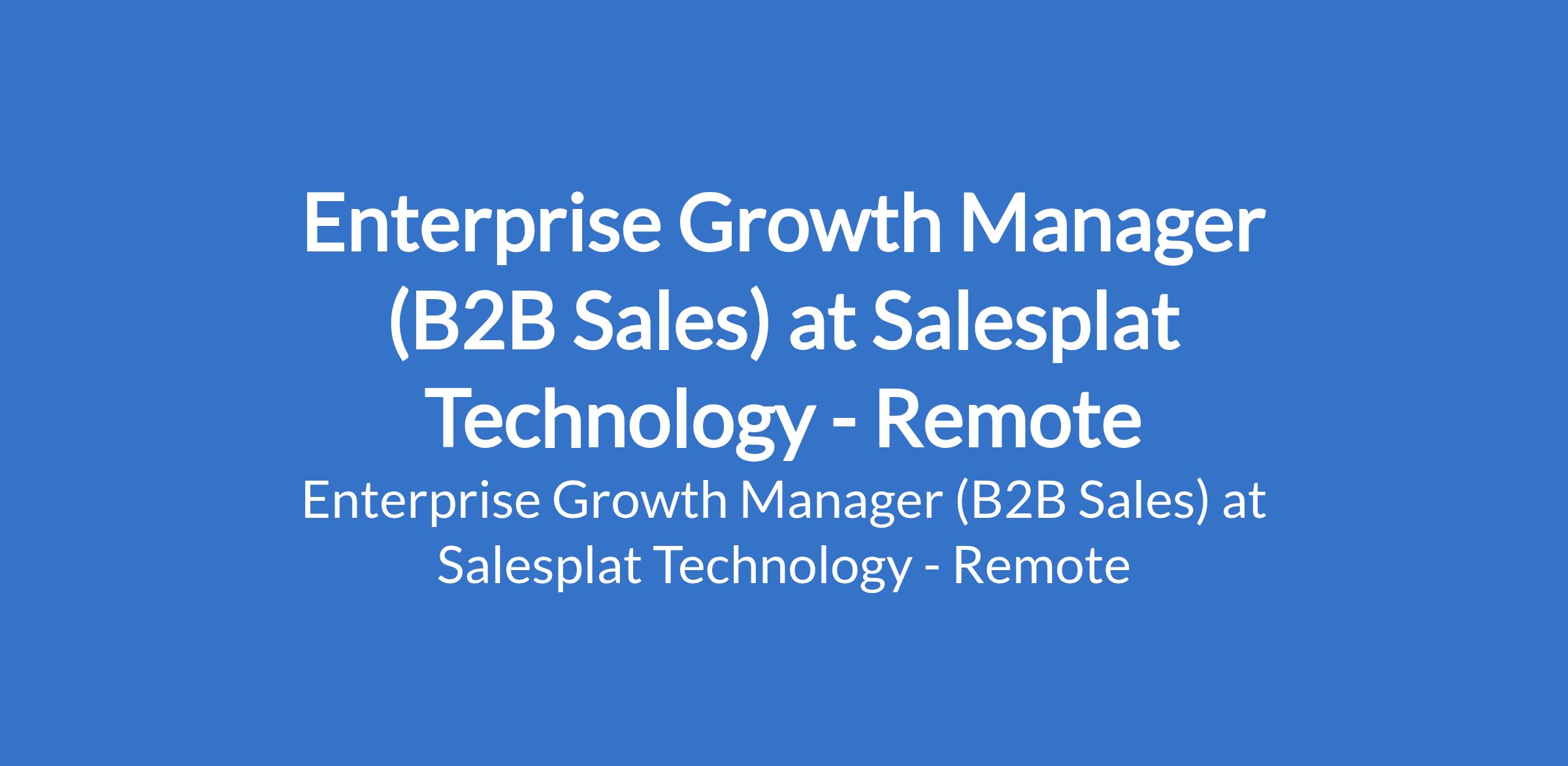 Salesplat Technology is recruiting to fill the position of: Enterprise Growth Manager (B2B Sales). This is a Remote Job. Salary: N1,000,000 monthly. Interested candidates should possess an HND / Bachelor's Degree with 10+ years of experience in B2B sales or corporate business development.