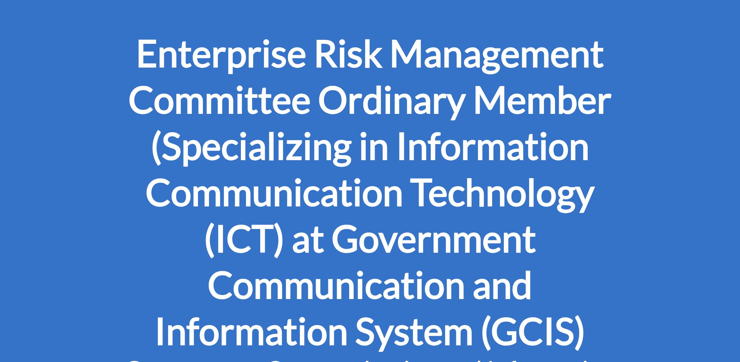 A minimum of a Degree in Information Communication Technology (ICT) or related degree specializing in ICT or Digital with a minimum of 10 years' management experience. Must be an independent external person, with extensive knowledge and experience in the relevant regulations and prescripts, including the Public Finance Management Act, Treasury Regulations, and ISO3100, King IV Report on Corporate Governance, the COSO and Public Sector Risk Management Framework. Must have previously served in Risk Management/Audit Committee and with experience in ICT governance, ICT risk & Audit related. Experience in a communications environment would be advantageous.