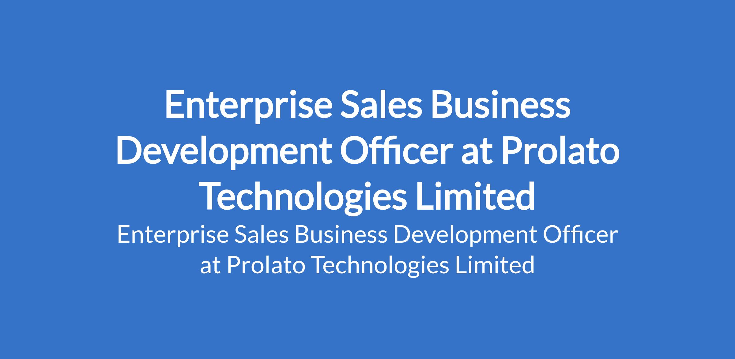 Prolato Technologies Limited is recruiting to fill the position of: Enterprise Sales Business Development Officer. The position is located in Surulere, Lagos State. Salary: N200,000 - N250,000 per month. Interested candidates should possess a B.Sc / HND qualification in relevant disciplines with 1-3 years experience in enterprise IT sales.