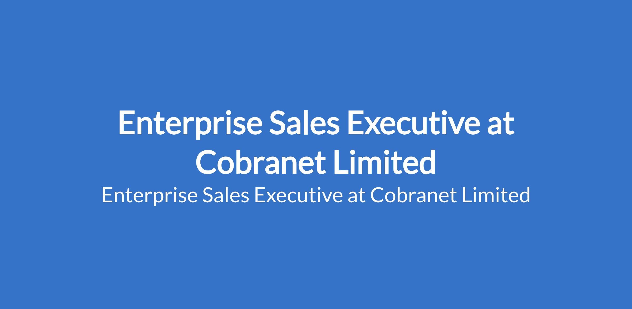 Cobranet Limited is recruiting to fill the position of: Enterprise Sales Executive. The position is located in Abuja. Interested candidates should possess a B.Sc / M.Sc Degree in Business Administration or related fields with successful previous experience as a sales representative, consistently meeting or exceeding targets.