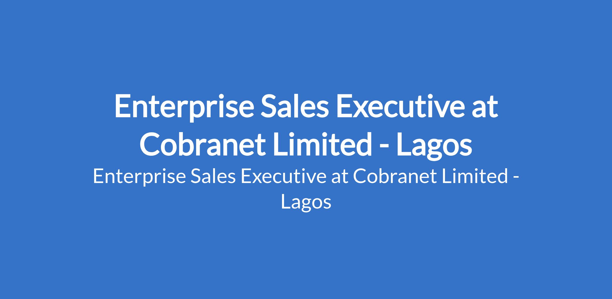 Cobranet Limited is recruiting to fill the position of: Enterprise Sales Executive. The position is located in Lekki Phase 1, Lagos State. Interested candidates should possess a B.Sc /M.Sc Degree in business administration or a related field; certification in sales or marketing will be an asset with successful previous experience as a sales representative, consistently meeting or exceeding targets.