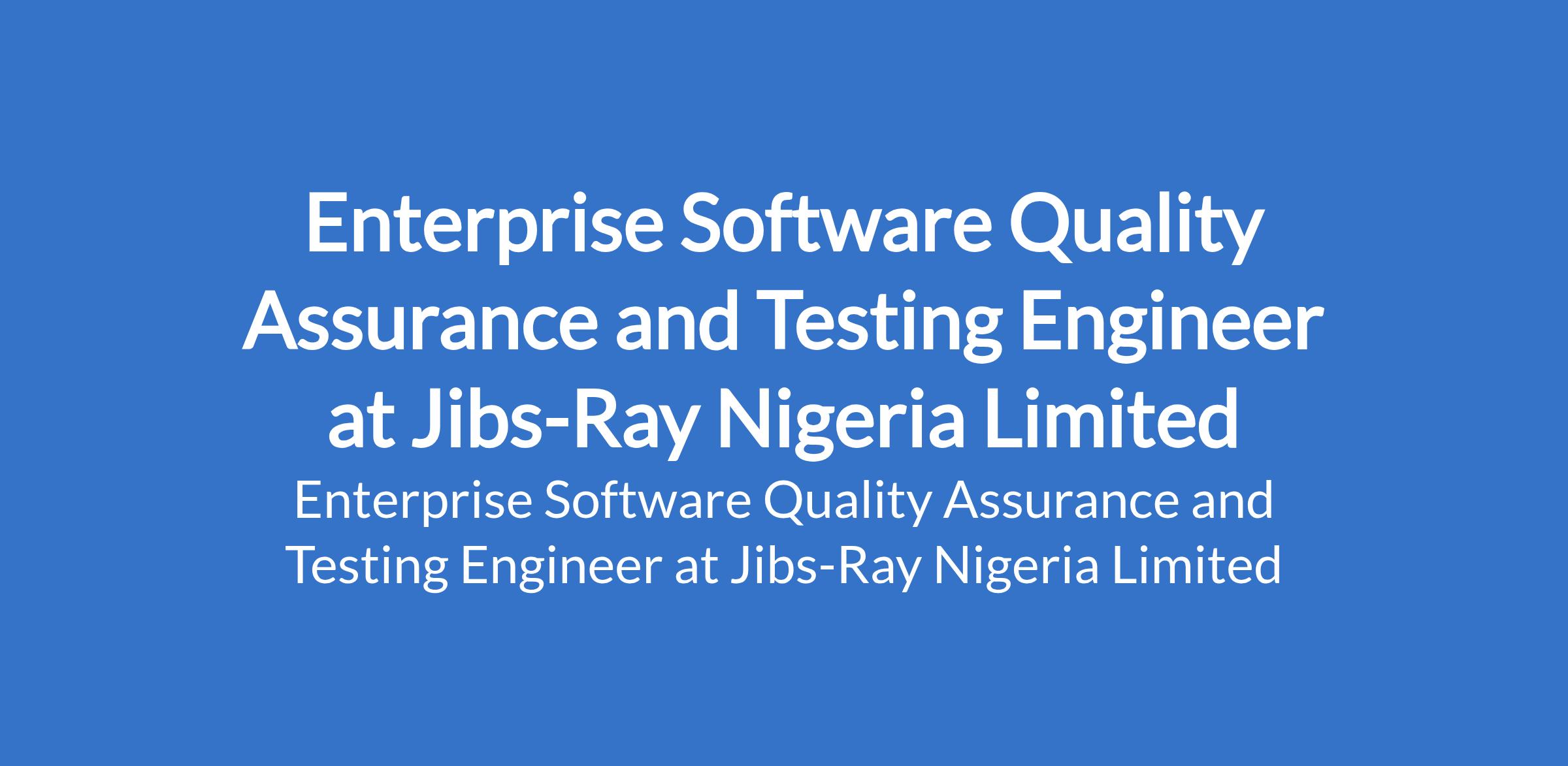 Jibs-Ray Nigeria Limited is recruiting to fill the position of: Enterprise Software Quality Assurance and Testing Engineer. The position is located in Ikoyi, Lagos State. Interested candidates should possess a B.Sc in Computer Science, Engineering, or a related field with strong experience in functional, non-functional, API, and database testing.