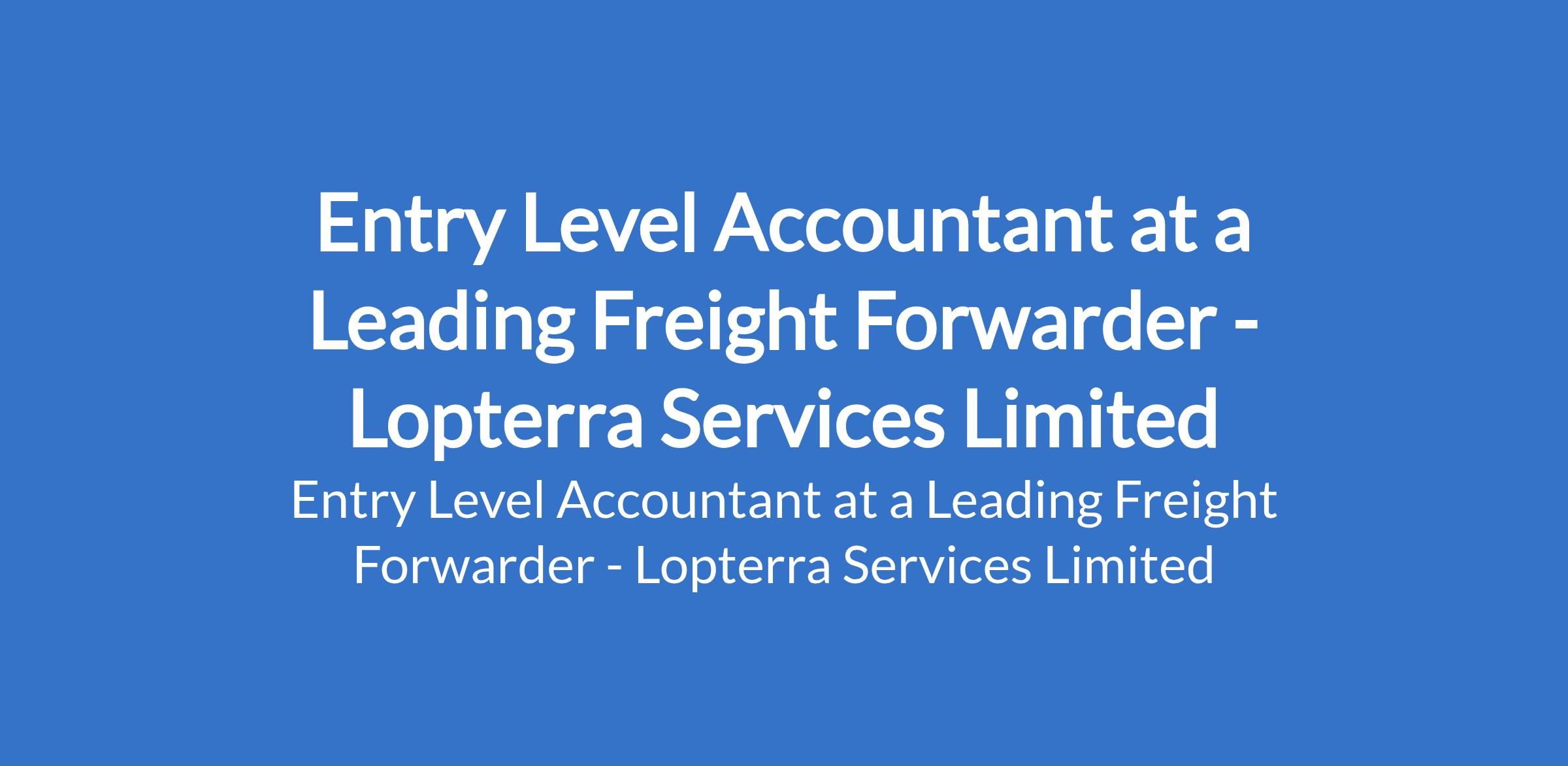 Lopterra Services Limited - Our client, a leading freight forwarder is recruiting to fill the position of: Entry Level Accountant. Salary: N100,000 - N150,000 monthly. Interested candidates should possess a B.Sc./HND in Accounting, Finance, or a related discipline with 13 years of relevant accounting experience, preferably in a fast-paced environment.