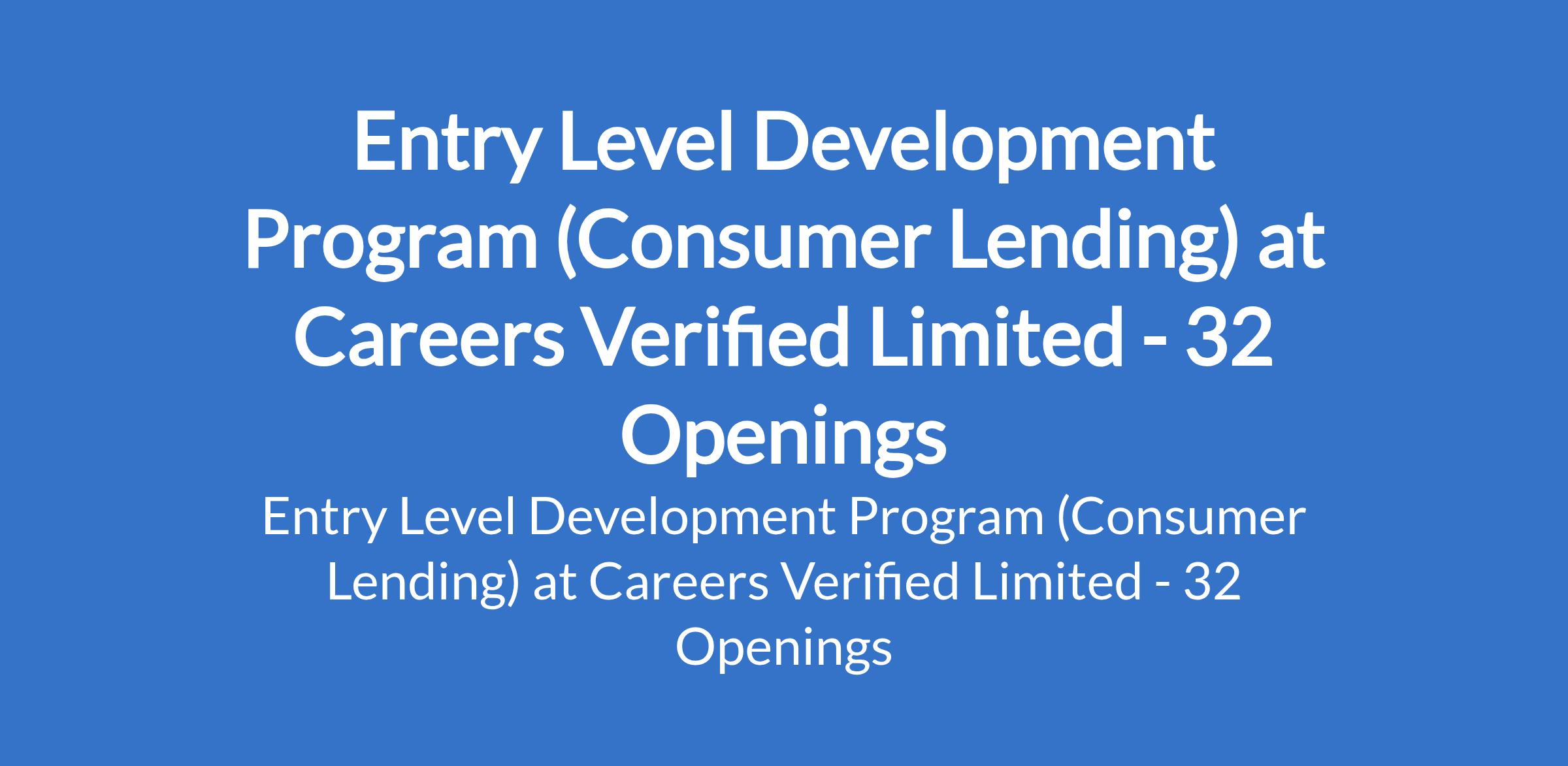 Careers Verified Limited is recruiting to fill the position of: Entry Level Development Program (Consumer Lending). The position is located in Abuja (FCT), Abia, Adamawa, Akwa Ibom, Anambra, Bauchi, Bayelsa, Benue, Cross River, Delta, Ebonyi, Edo, Ekiti, Enugu, Imo, Kaduna, Kano, Katsina, Kogi, Kwara, Lagos, Nasarawa, Niger, Ogun, Ondo, Osun, Oyo, Plateau, Rivers, Sokoto, Taraba, and Yobe States. Interested candidates should possess a Bachelors Degree in Finance, Economics, Business Administration, or a related field with 01 year of work experience and must have completed NYSC.