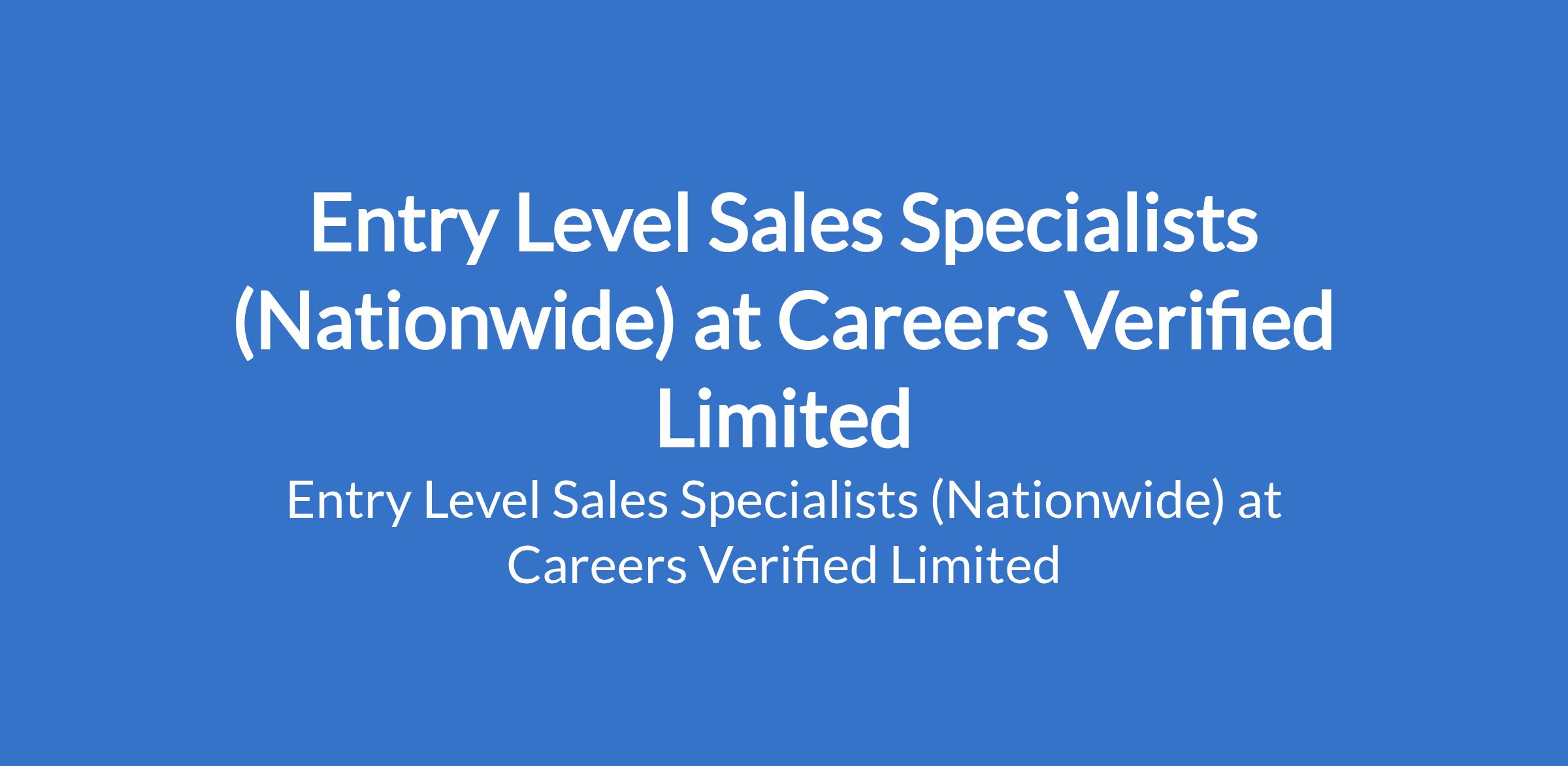 Careers Verified Limited is recruiting to fill the position of: Entry Level Sales Specialist. This position is required nationwide. Salary: N93,000 monthly. Interested candidates should possess a Bachelors Degree or HND qualification in Business Administration, Marketing, or a related field (or equivalent experience) with 01 year of sales experience (fresh graduates are encouraged to apply).