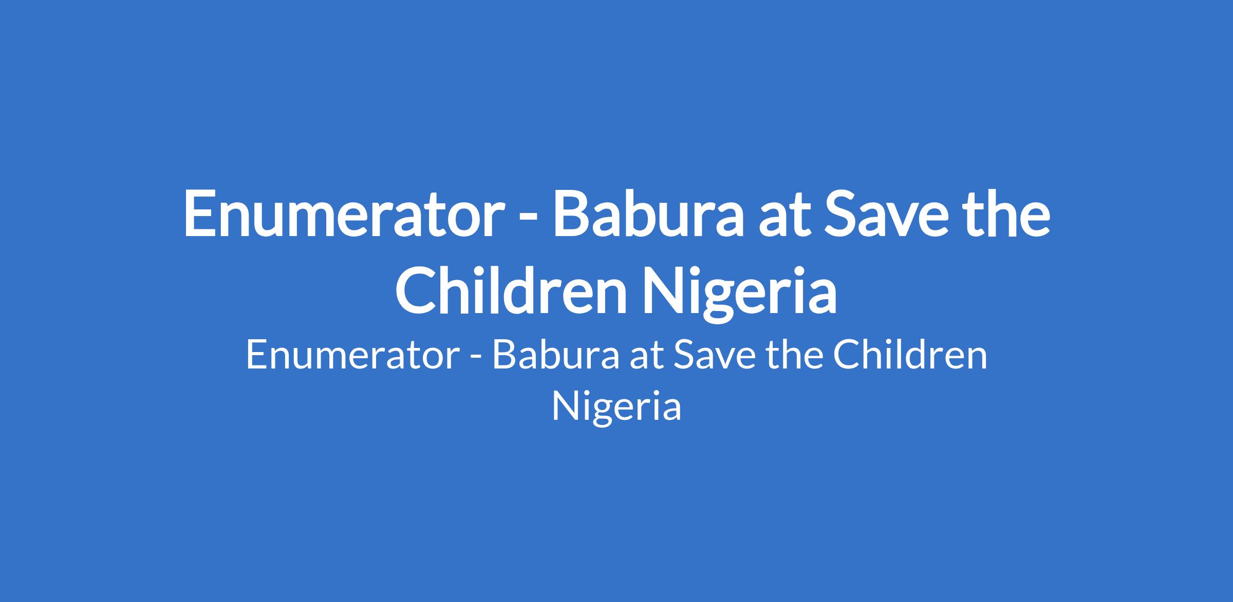Save the Children Nigeria is recruiting to fill the position of: Enumerator. The position is located in Babura, Jigawa State. The Enumerators will support community projects by collecting accurate and reliable data, engaging with community members, and contributing to efforts aimed at improving childrens learning outcomes and protection.