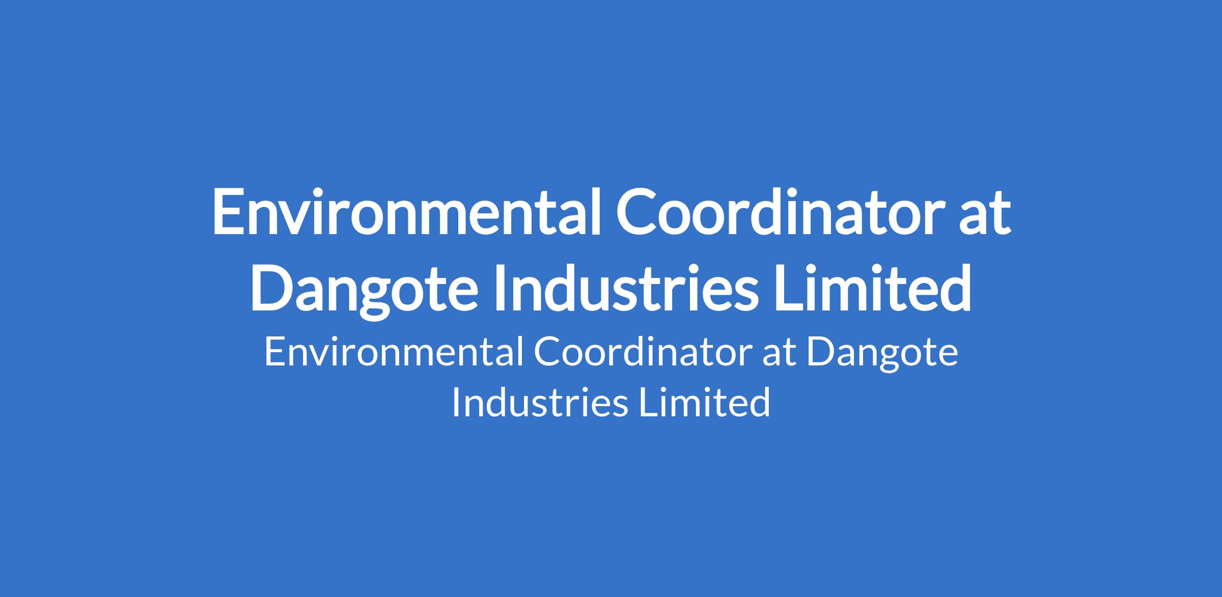 Dangote Industries Limited is recruiting to fill the position of: Environmental Coordinator. The position is located in Ndola Cement, Zambia. Interested candidates should possess a Bachelors Degree or equivalent in Environmental Engineering or related disciplines with 8 - 10 years experience in practice of community affairs, managing multiple stakeholders and resolving complex organizational issues relating to the stakeholders.
