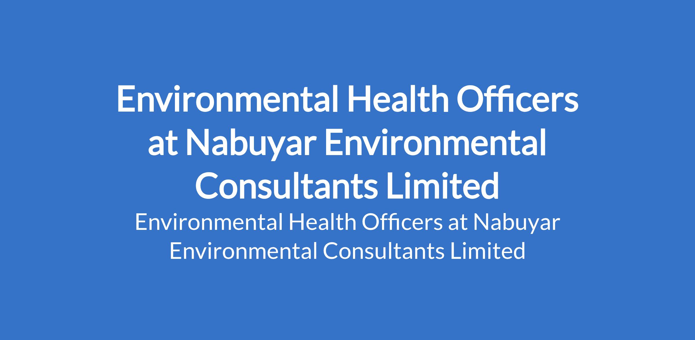 Nabuyar Environmental Consultants Limited is recruiting to fill the position of: Environmental Health Officer. The position is located in Abuja. Salary: N250,000 per month. Interested candidates must be a registered Environmental Health Officer with a valid practicing license from the Environmental Health Council of Nigeria (EHCON) and a minimum of 2 years relevant field experience.