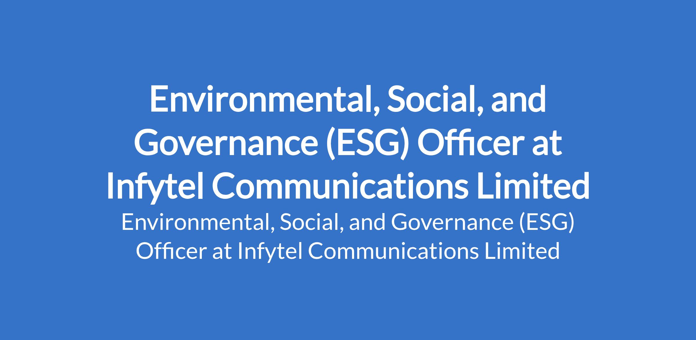 Infytel Communications Limited is recruiting to fill the position of: Environmental, Social, and Governance (ESG) Officer. The position is located in Port Harcourt, Rivers State. Interested candidates should possess a Bachelors Degree in Environmental Science, Sustainability, Business, or related field with 35 years experience in ESG, CSR, or sustainability roles.
