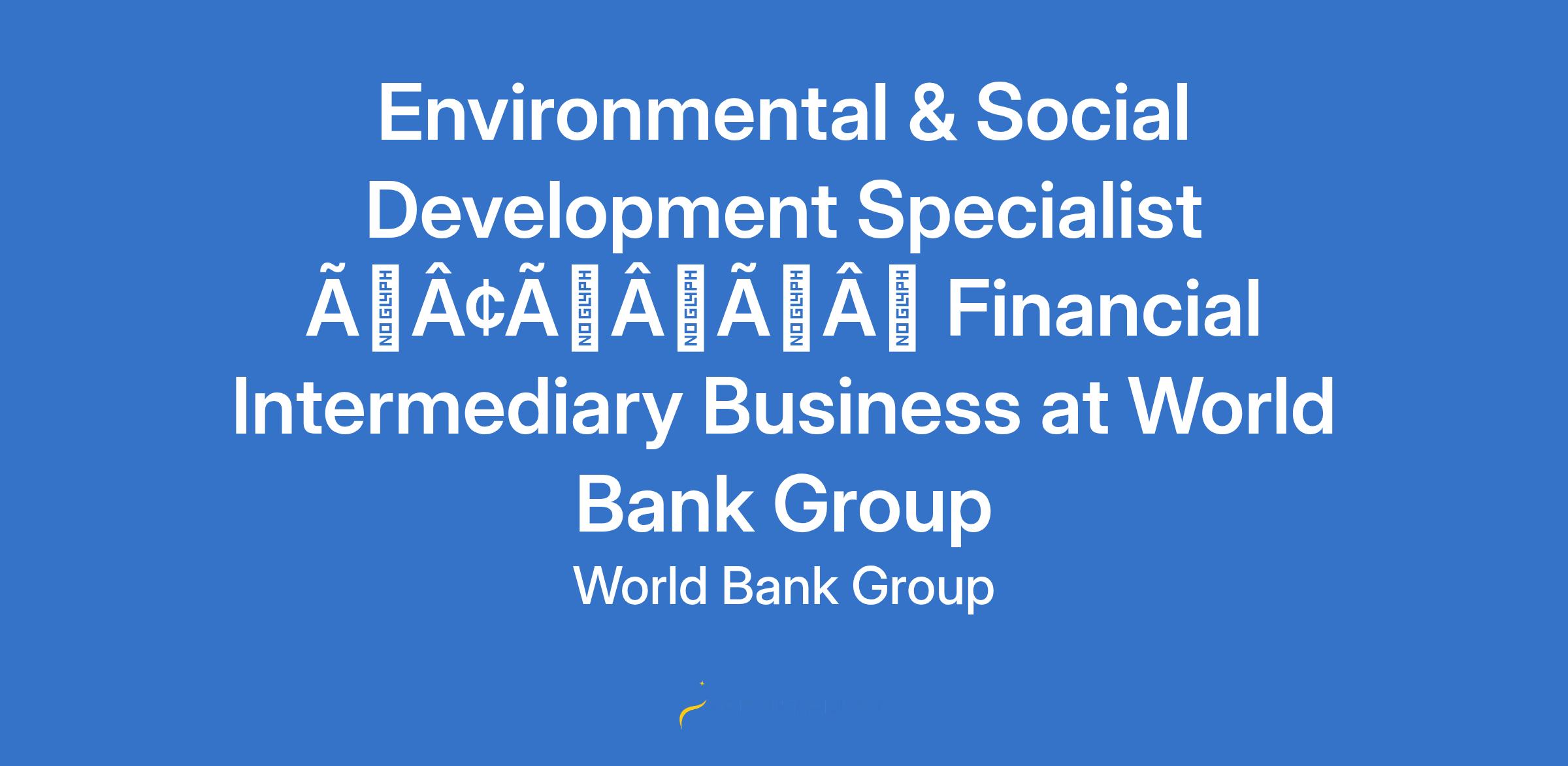 Environmental & Social Development Specialist âÃÂàFinancial Intermediary Business at World Bank Group