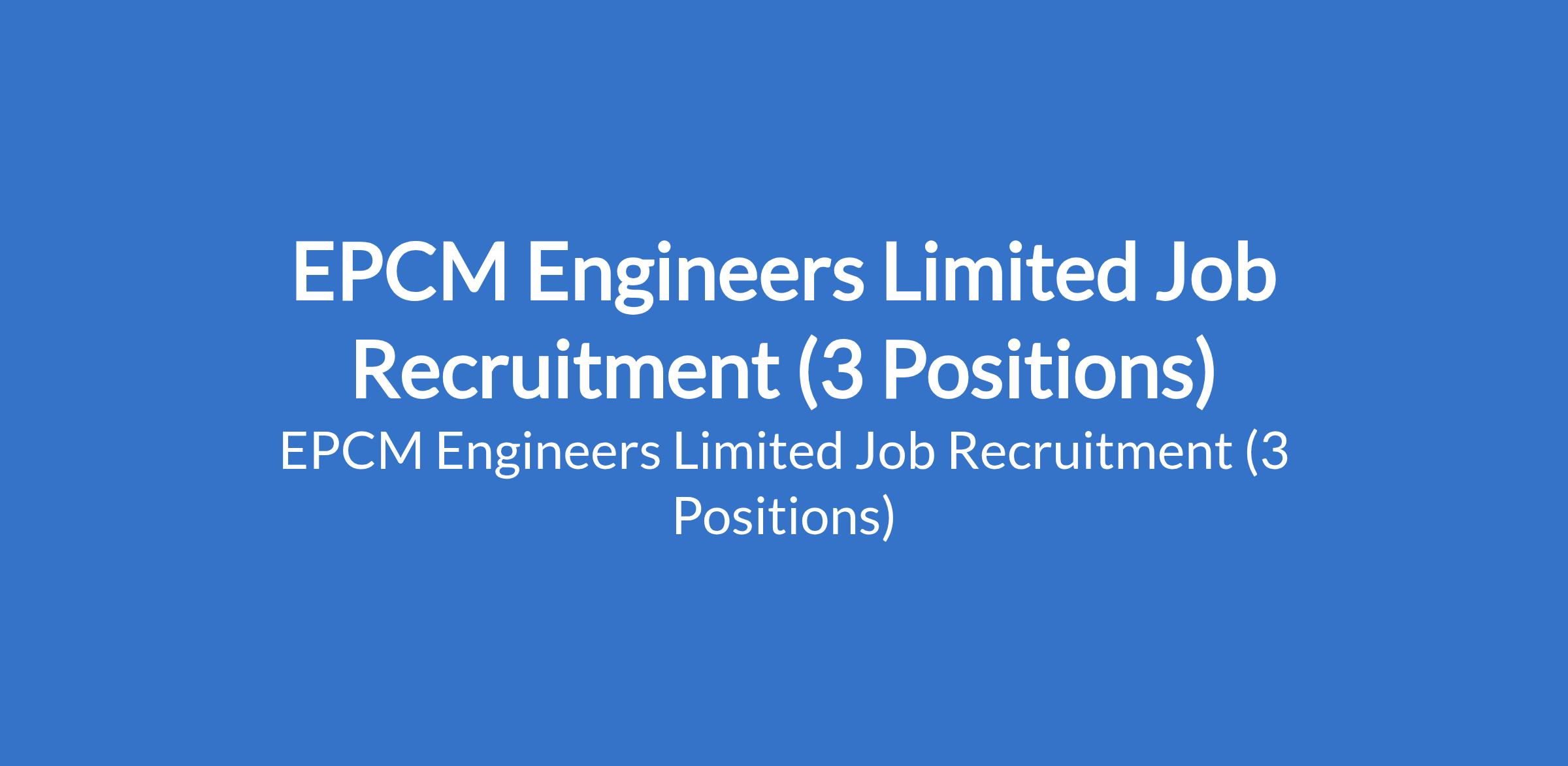 EPCM Engineers Limited Job Recruitment (3 Positions)