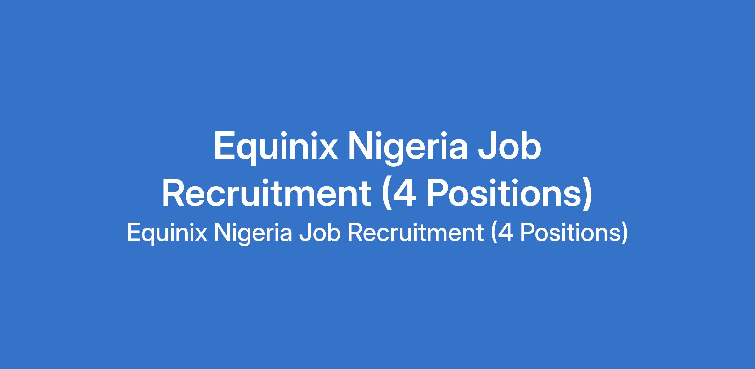 Equinix Nigeria is recruiting suitably qualified candidates to fill the following positions in Lagos State: Access Network Planning Engineer, IP Projects and Implementation Engineer, Data Center Critical Facilities Engineer, and ERP Specialist - Dynamics 365.