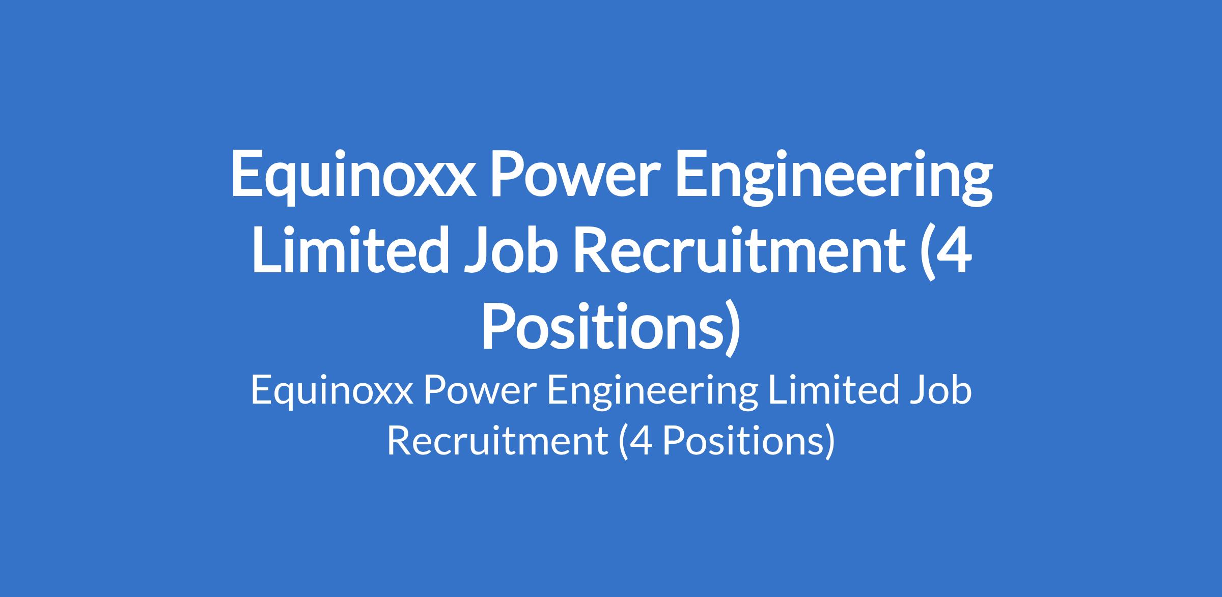 Equinoxx Power Engineering Limited Job Recruitment (4 Positions)