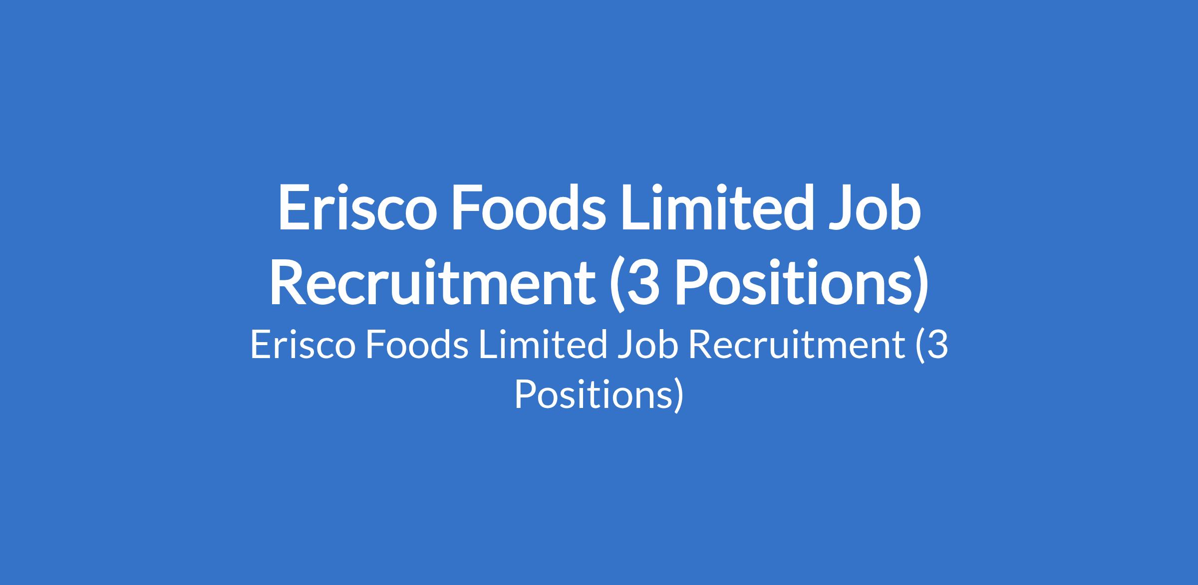Erisco Foods Limited Job Recruitment (3 Positions)
