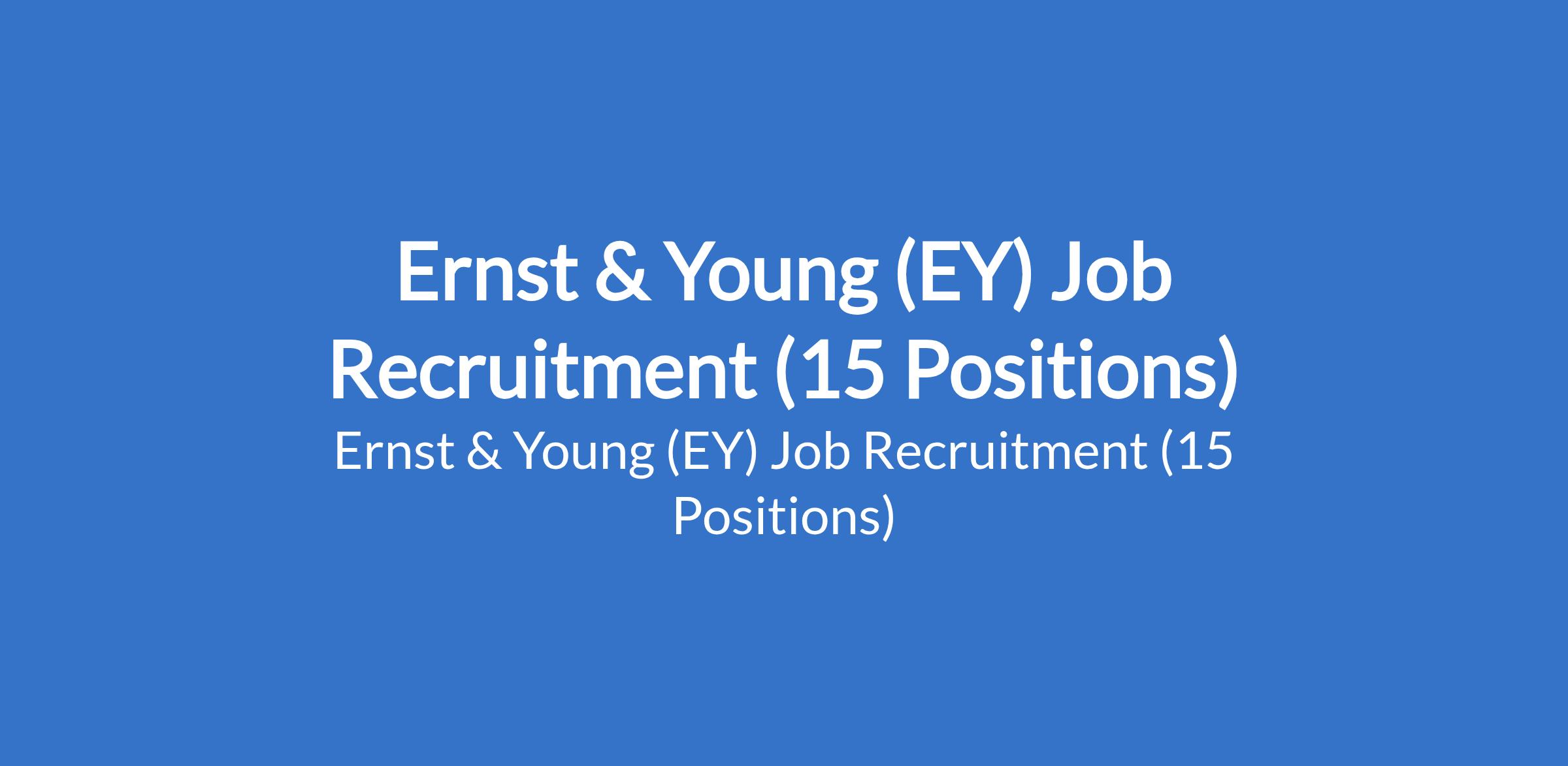 Ernst & Young (EY) is recruiting suitable candidates to fill the following positions in Lagos State: Senior, Indirect Tax Core, Associate, Indirect Tax; Staff, Indirect Tax; Senior Manager; ITTS Advisory; Senior, Regulatory Compliance; Staff, Global Compliance and Reporting, Senior, PAS Immigration; Staff, PAS Mobility; Manager, Regulatory Compliance; Staff, Regulatory Compliance; Manager, ITTS-Advisory; and Staff, PAS Immigration.