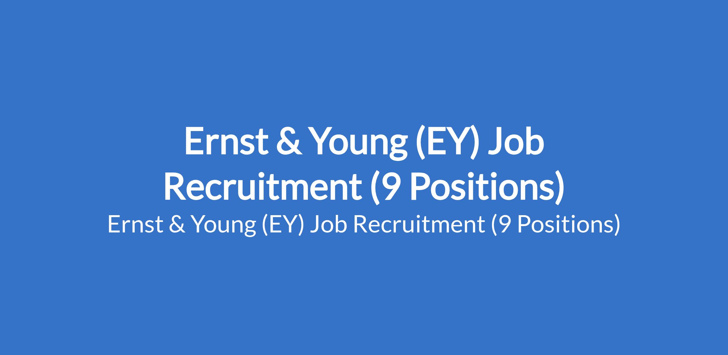 Ernst & Young (EY) is recruiting suitable candidates to fill the following positions in Lagos State: Senior Manager, ITTS Advisory, Senior, Regulatory Compliance, Staff, Global Compliance and Reporting, Senior, PAS Immigration; Staff, PAS Mobility; Manager, Regulatory Compliance; Staff, Regulatory Compliance; Manager, ITTS-Advisory; and Staff, PAS Immigration.
