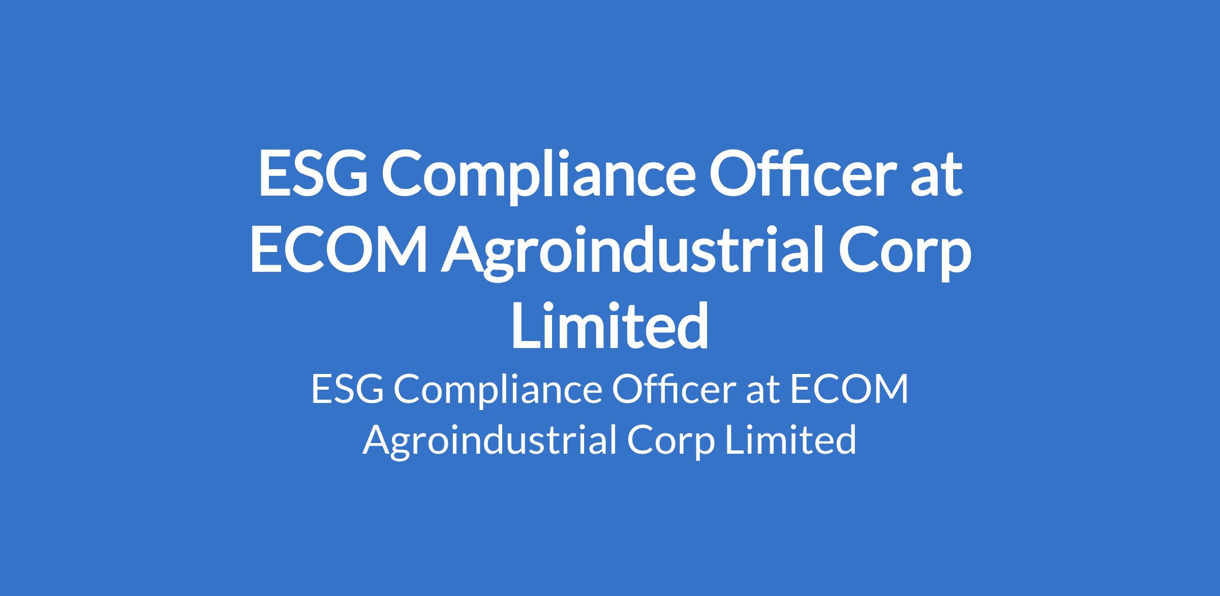 ECOM Agroindustrial Corp Limited is recruiting to fill the position of: ESG Compliance Officer. The position is located in Lagos State. Interested candidates should possess an HND or B.Sc Degree in Environmental Science, Business Administration, or a related field with 35 years of experience in environmental management or sustainability compliance, preferably within the agricultural or manufacturing sector.