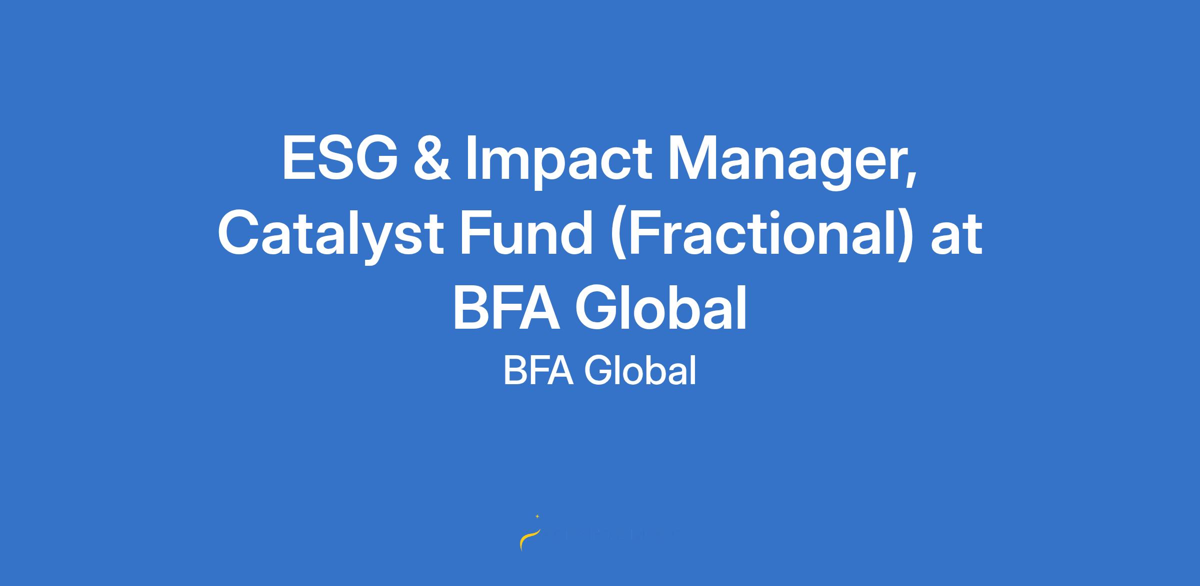 ESG & Impact Manager, Catalyst Fund (Fractional) at BFA Global