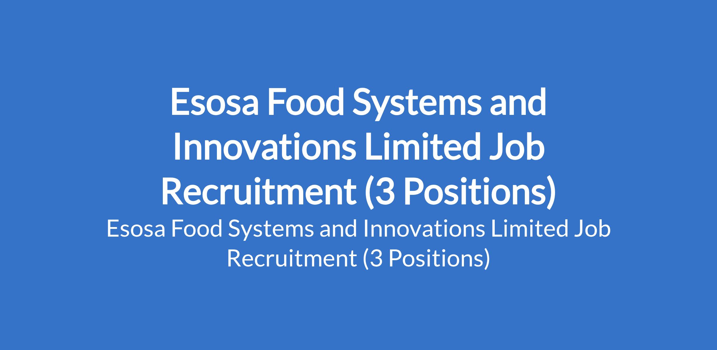 Esosa Food Systems and Innovations Limited Job Recruitment (3 Positions)