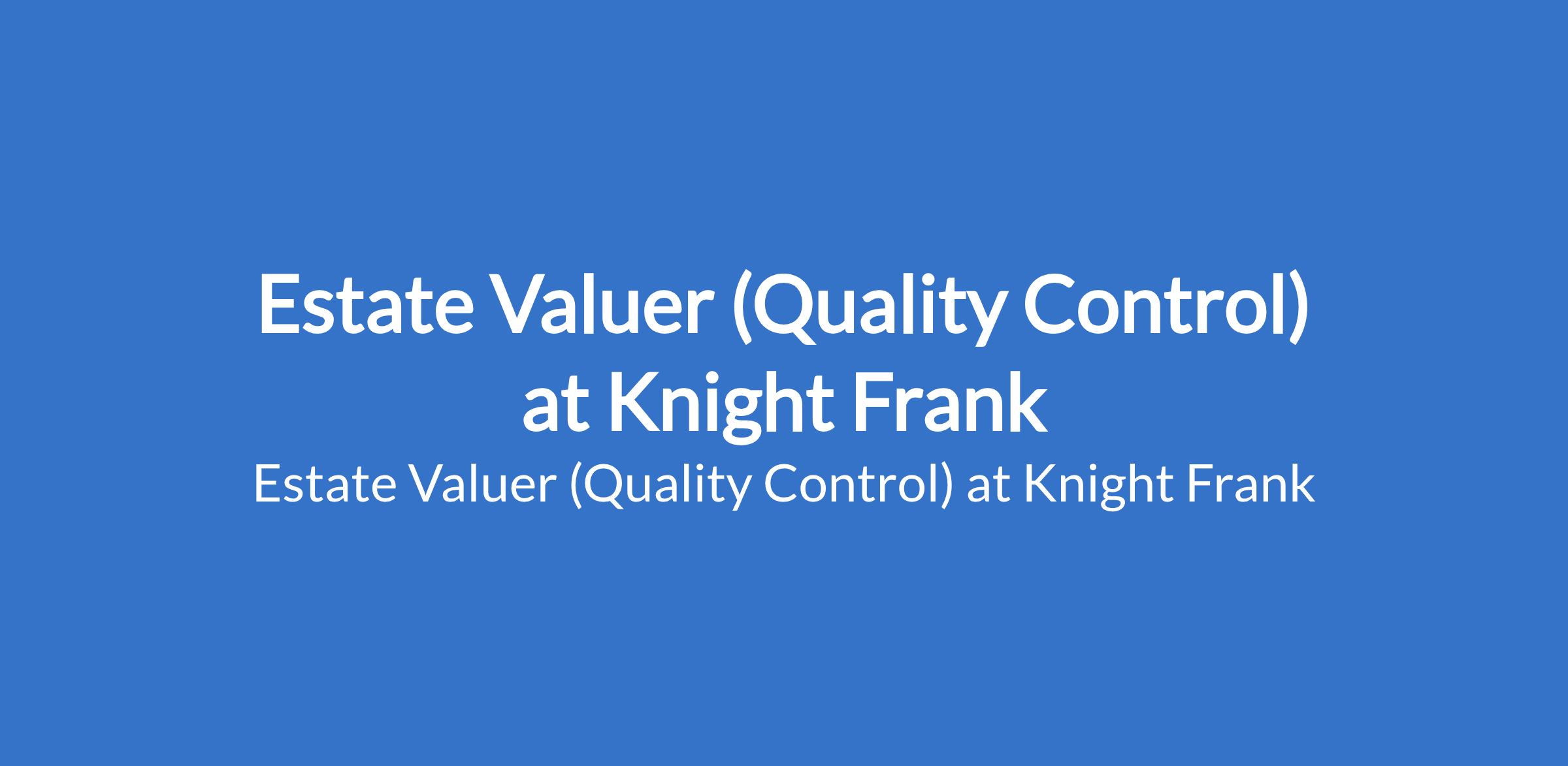 Estate Valuer (Quality Control) at Knight Frank