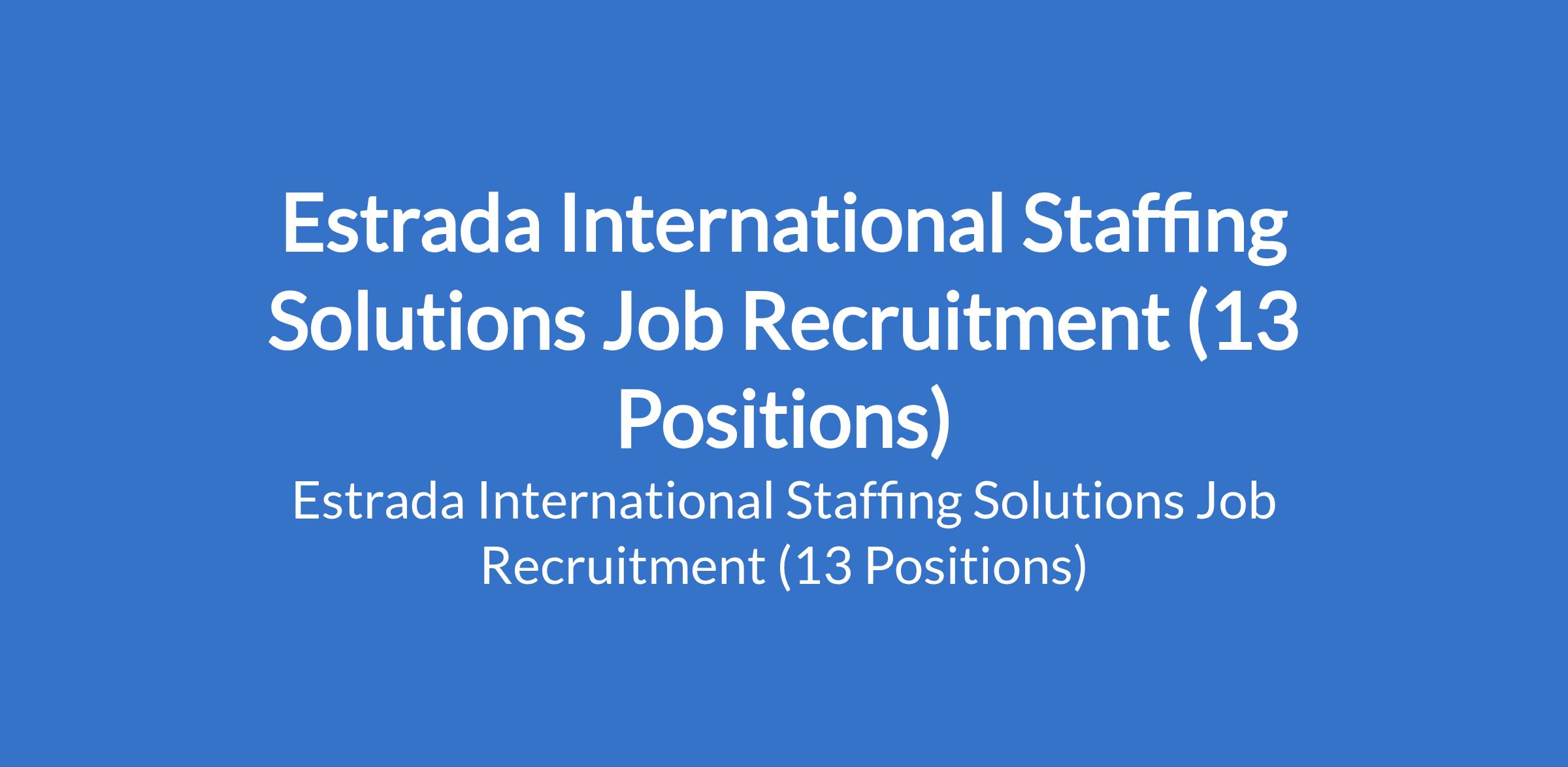 Estrada International Staffing Solutions is recruiting suitably qualified candidates to fill the following positions in Lagos State: Corporate Business Officer, Audit and Compliance Officer, Business Development Manager, Legal Officer, Customer Experience Analyst, Financial Manager, Executive Assistant to the CRO, On - Trade Officer, Talent Acquisition Analyst (Vertical Markets & Executive Search), Male Pharmacist Technician, Business Development Officer, Sales and Marketing Officer, & Learning & Development Associate (External).