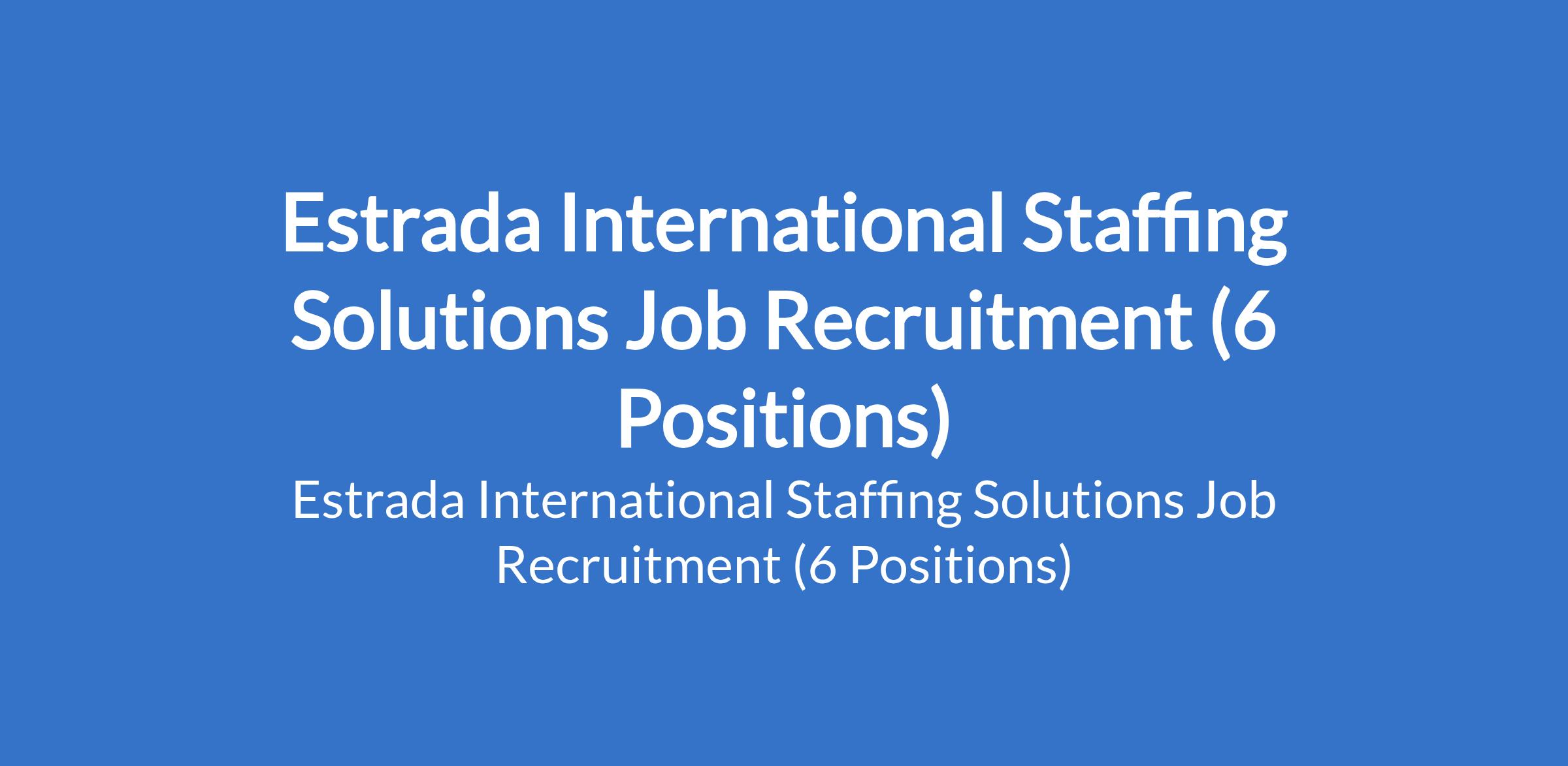 Estrada International Staffing Solutions is recruiting suitable candidates to fill the following positions in Kebbi, Gombe, Yobe & Lagos States: Business Development Manager, HRBP (Outsourcing) HR Business Process Officer, Talent Acquisition Analyst, HR Operations Officer (Outsourcing), Background Checks Officer, and Digital Marketing Officer.