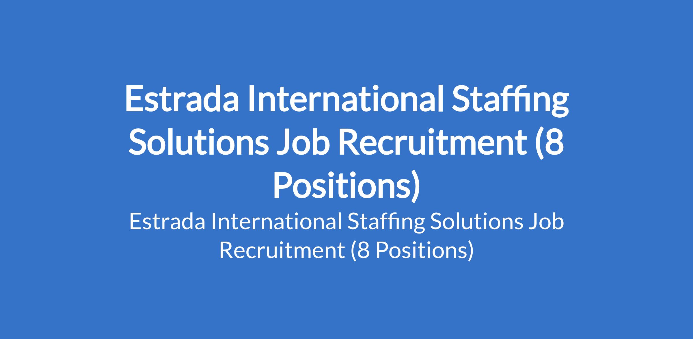 Estrada International Staffing Solutions is recruiting suitable candidates to fill the following positions in Abuja and Lagos State: Sales and Marketing Officer, Male Pharmacist Technician, Content Strategy & Social Media Associate (Real Estate), Sales & Marketing Associate, Executive Secretary & Administrative Assistant to the General Overseer, Direct Sales Agent (DSA), Finance Manager, and Business Development Officer.