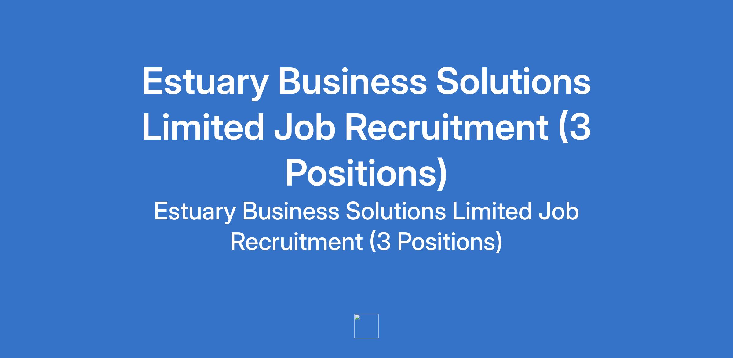 Estuary Business Solutions Limited Job Recruitment (3 Positions)