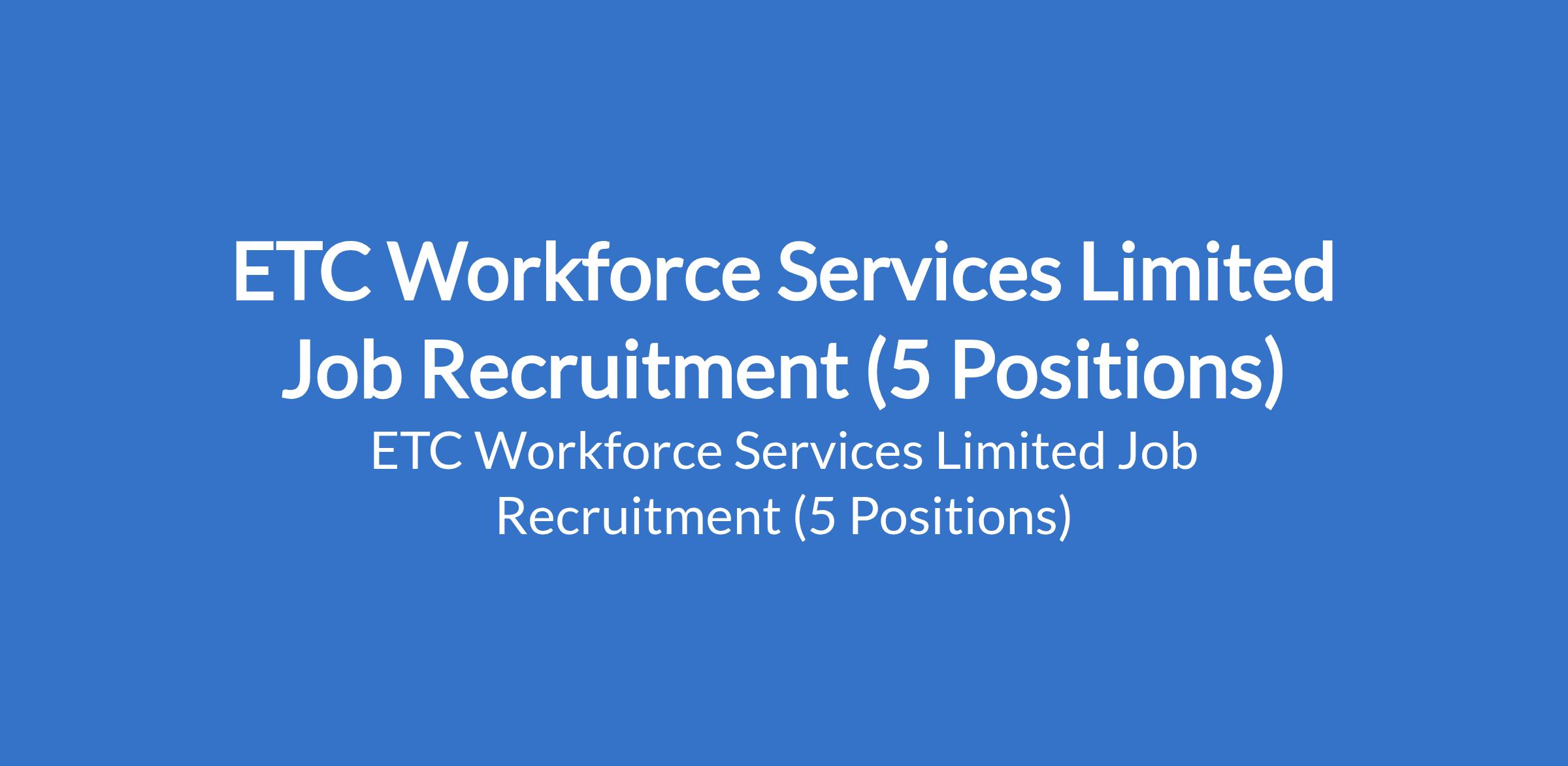 ETC Workforce Services Limited is recruiting suitably qualified candidates to fill the following positions in Lagos State: QA / QC Supervisor, Procurement Officer, Creative Specialist, Project Engineer / Manager, QA/QC Supervisor, and Sales Admin Officer.
