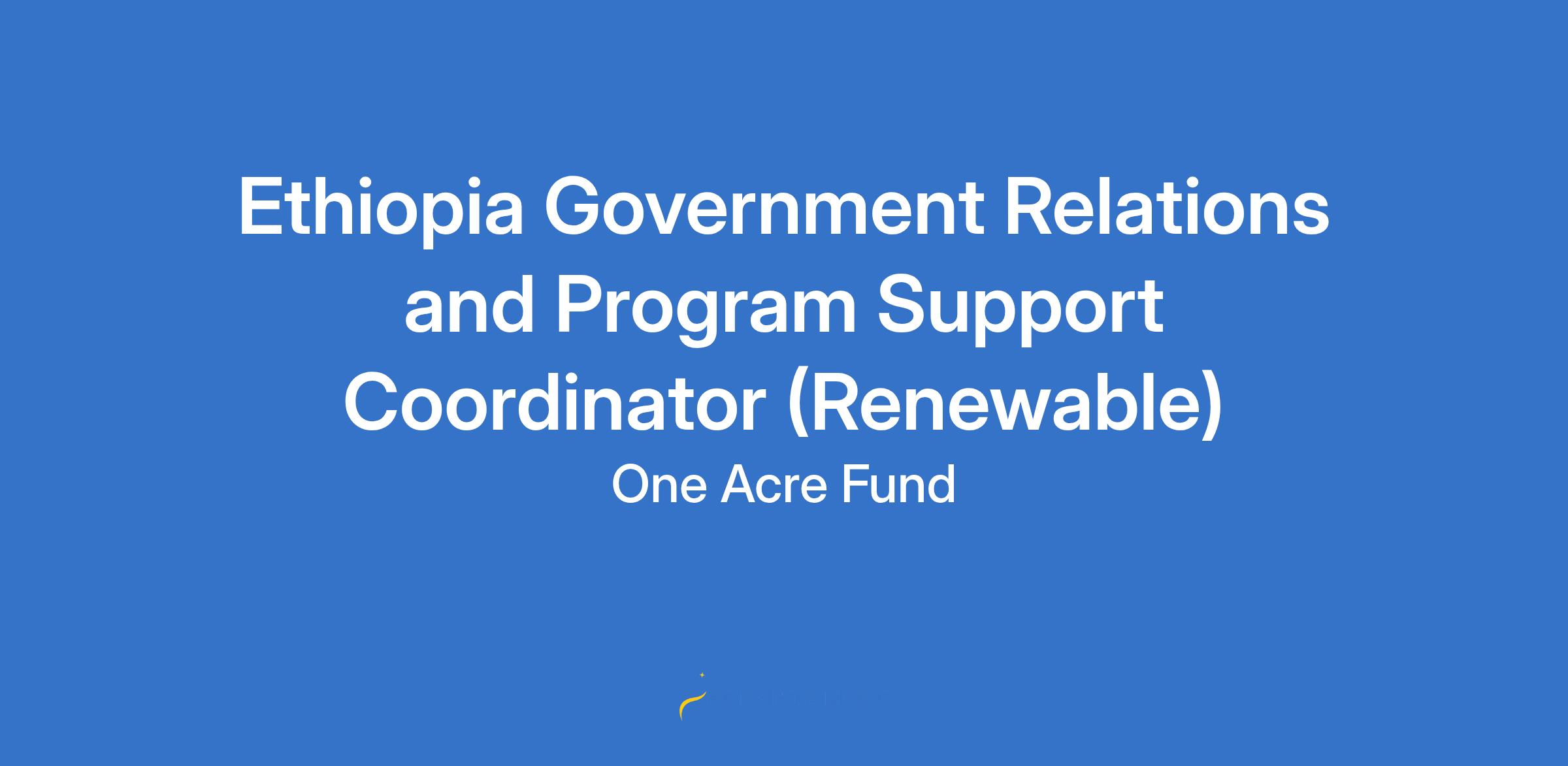 One Acre Fund-Ethiopia is looking for a Government Relations (GR) & Program Support Coordinator, who will be the primary contact for the Zonal and Woreda offices of Agriculture and other Woreda and Zonal government officials and external partners in Wolaita Zone. You will support our efforts to further establish our program in the South Ethiopia region more broadly. You will also play a key role in de-risking our field engagements through active information gathering, staff training, and compliance management to ensure that our operations can run smoothly with reduced disruptions and risks to our staff and farmers alike. As such, this role is critical to the success of the program.