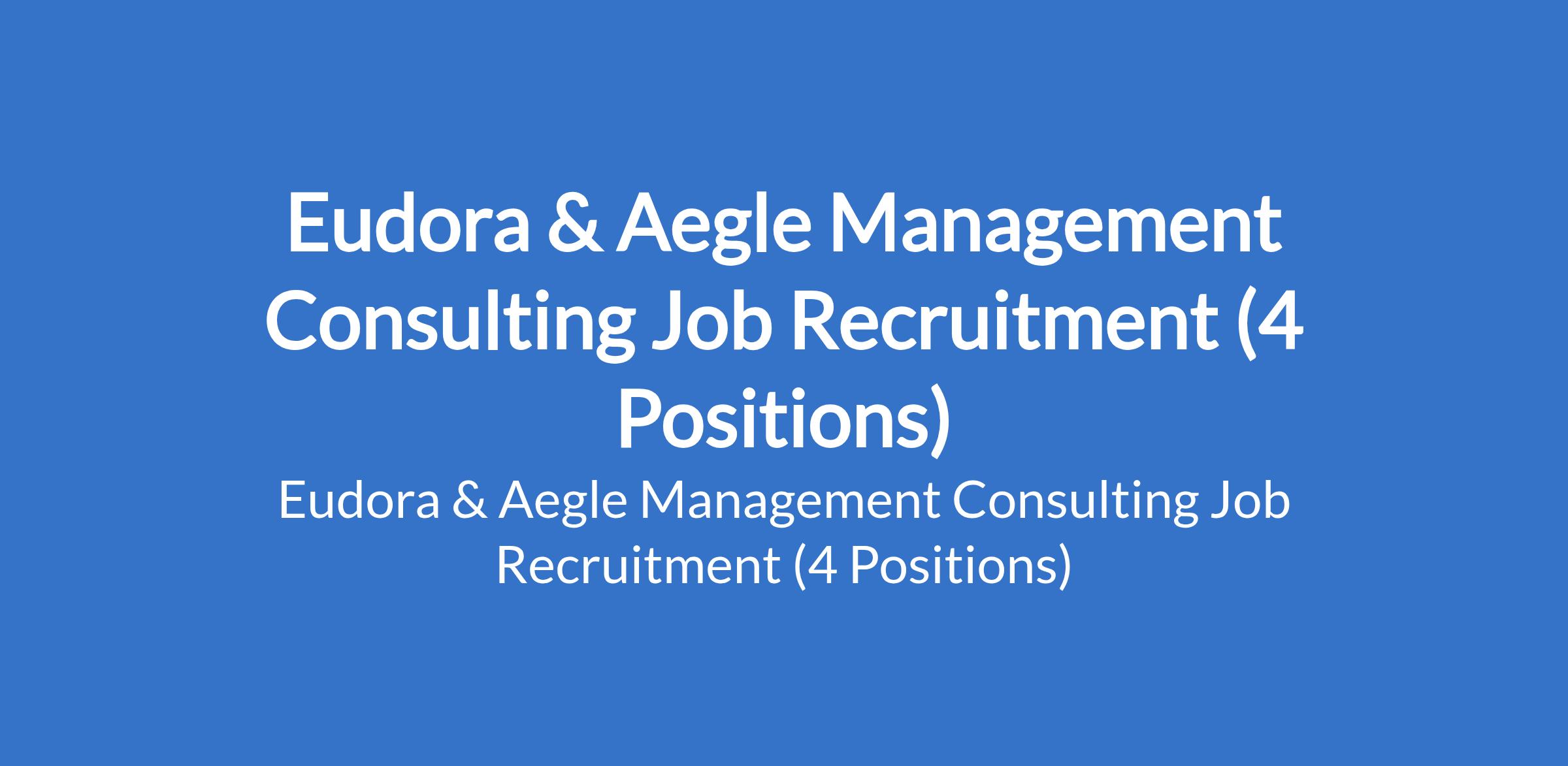 Eudora & Aegle Management Consulting Job Recruitment (4 Positions)