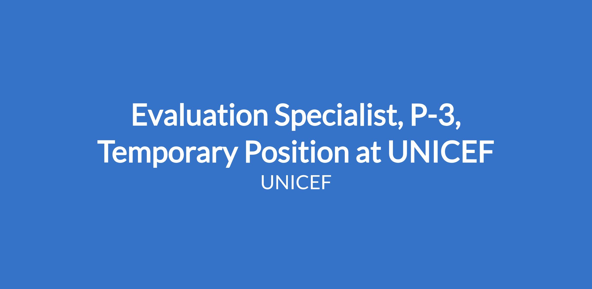 Evaluation Specialist, P-3, Temporary Position at UNICEF