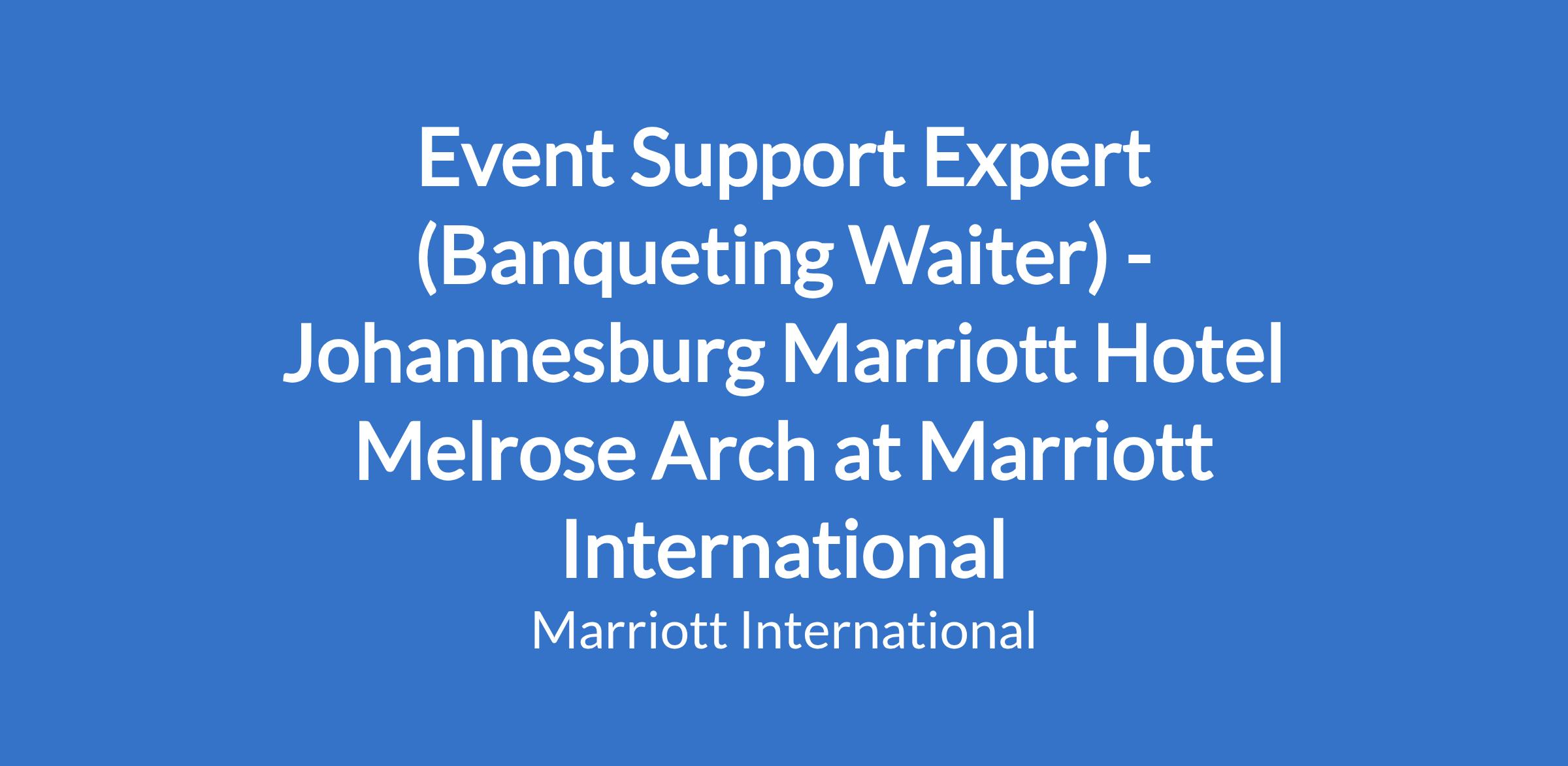 Event Support Expert (Banqueting Waiter) - Johannesburg Marriott Hotel Melrose Arch at Marriott International