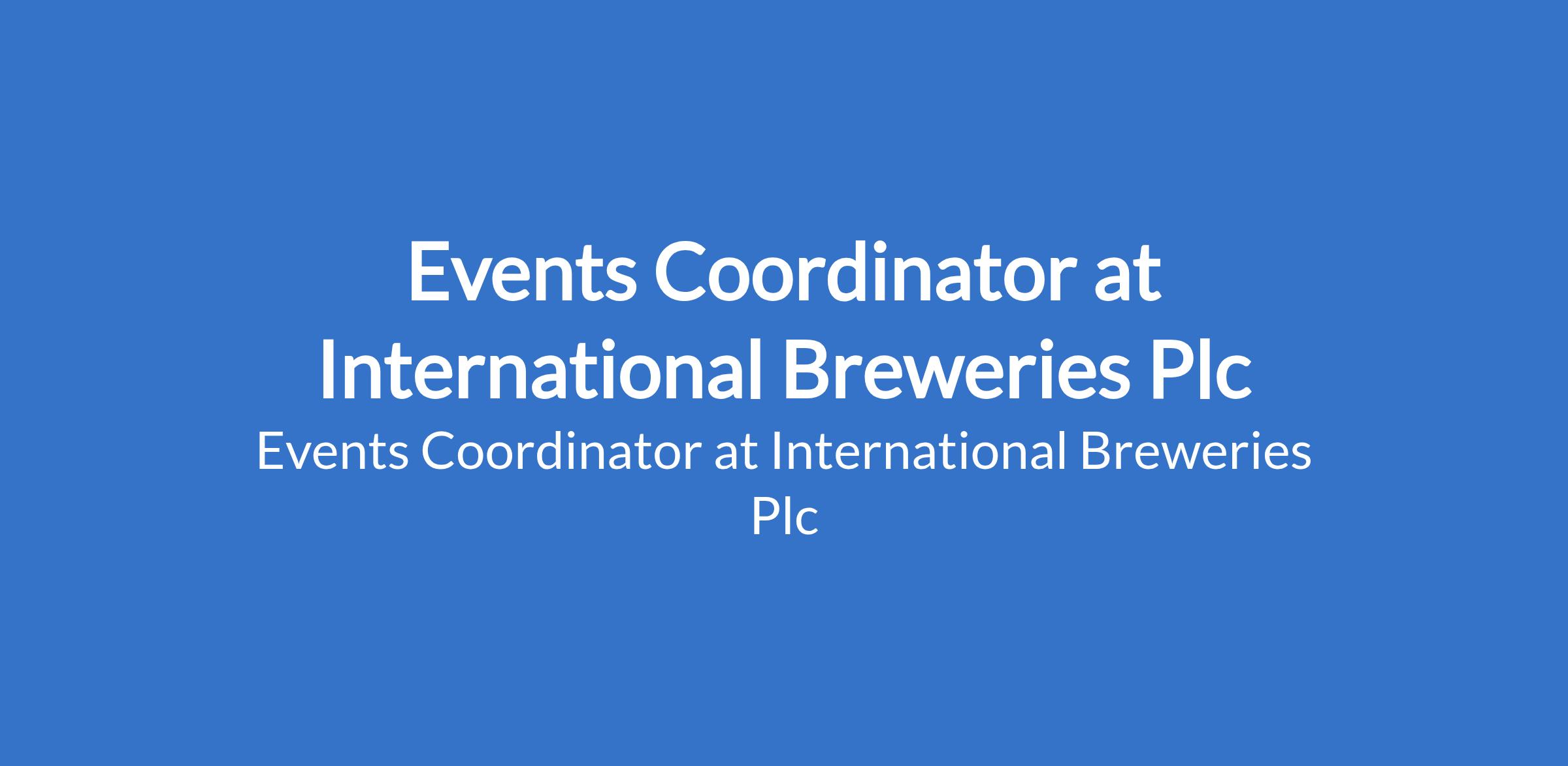 International Breweries Plc is recruiting to fill the position of: Events Coordinator. The position is located in Isolo, Lagos State. Interested candidates should possess a Bachelor's Degree in a relevant field. with a minimum of 2 years relevant work experience.
