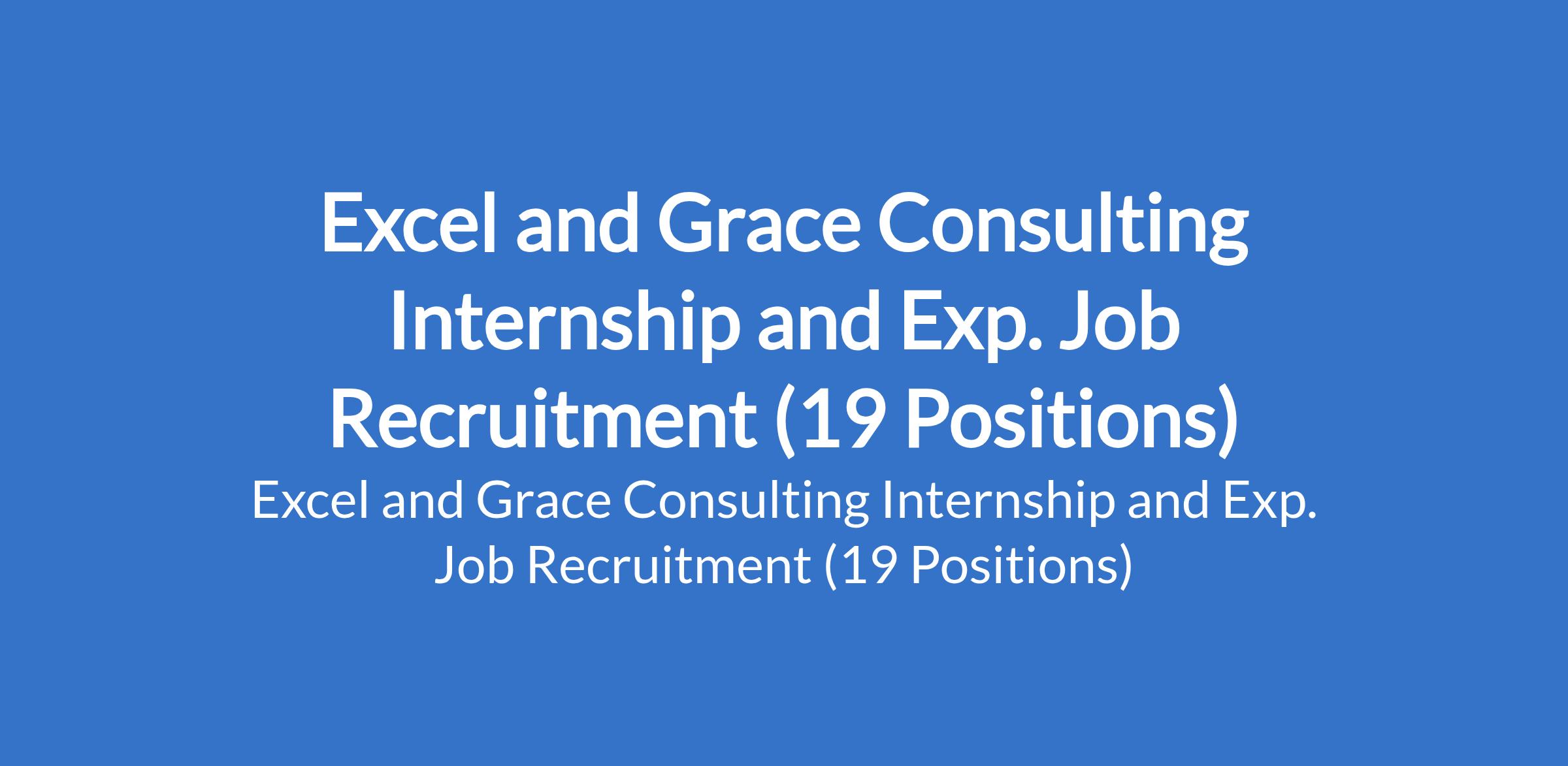 Excel and Grace Consulting is recruiting suitably qualified candidates to fill the following internship and experienced positions in Abuja (FCT), Lagos, Anambra, and Rivers States: Accountant; Store and Inventory Officer; Consulting Intern; HR / Admin Manager; Business Development Executive; Business Manager; Internal Auditor; Content Creator; Operations Manager; Executive Assistant; Marketing / Field Agent; Executive Assistant; Human Resources (HR) Manager; Business Manager; and Accountant.