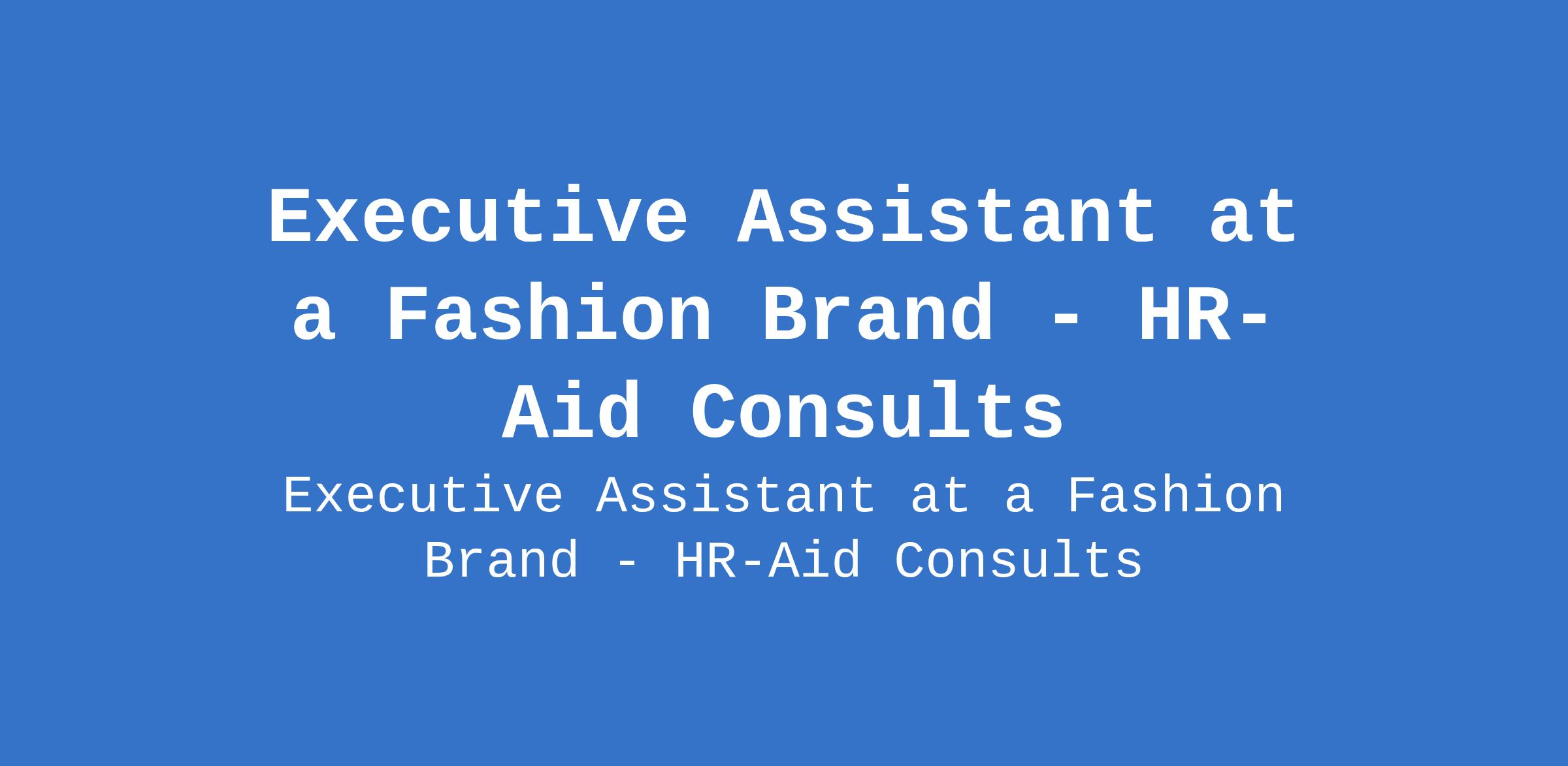 HR-Aid Consults - Our client, a Fashion Brand is recruiting to fill the position of: Executive Assistant. The position is located in Lekki, Lagos State. Salary: N250,000 monthly. Interested candidates should possess an Associates or Bachelors Degree in Business Administration, Communications, or related field with 4+ years of experience in an executive support or administrative role preferred.