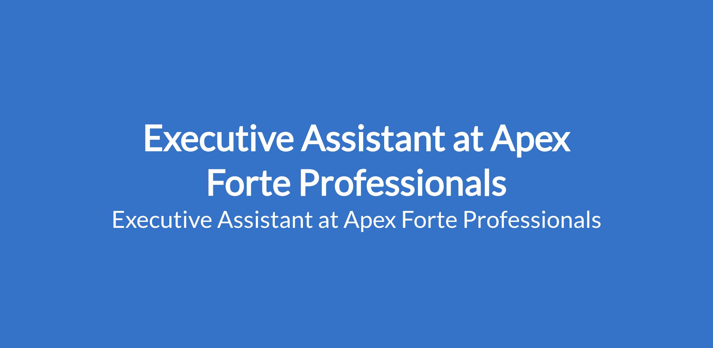 Apex Forte Professionals is recruiting to fill the position of: Executive Assistant. The position is located in Ilupeju, Lagos State. Salary: N180,000 - N200,000 monthly. Interested candidates should possess a Bachelor`s Degree with 4 - 6 years experience.