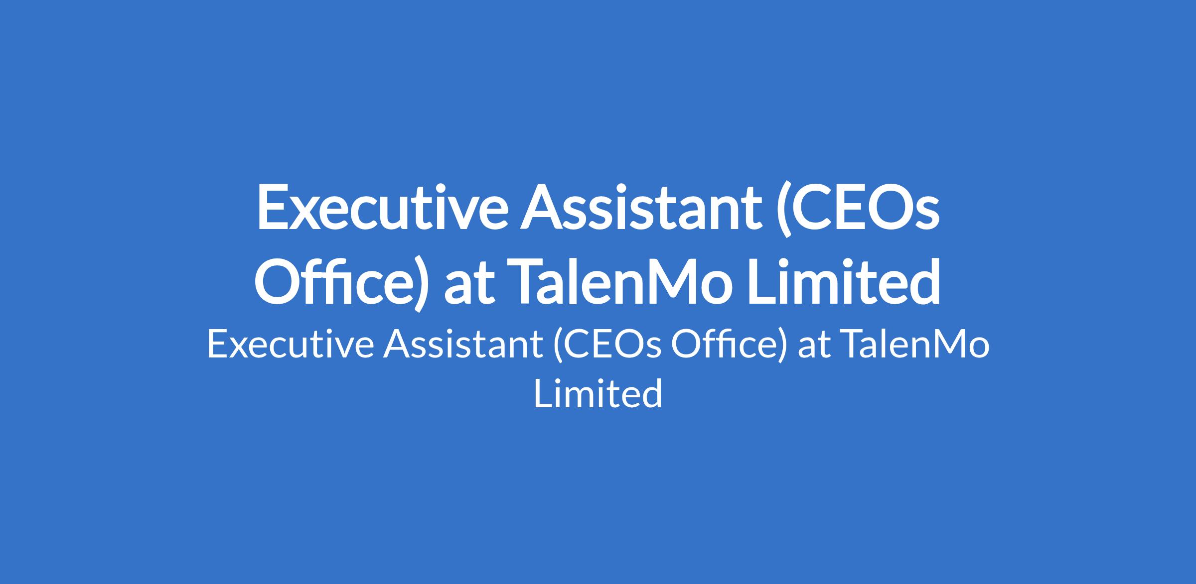 TalenMo Limited is recruiting to fill the position of: Executive Assistant (CEOs Office). The position is located in Magodo, Lagos State. Interested candidates should possess relevant qualifications with 35 years experience in Executive Support, Operations, or Strategy roles.