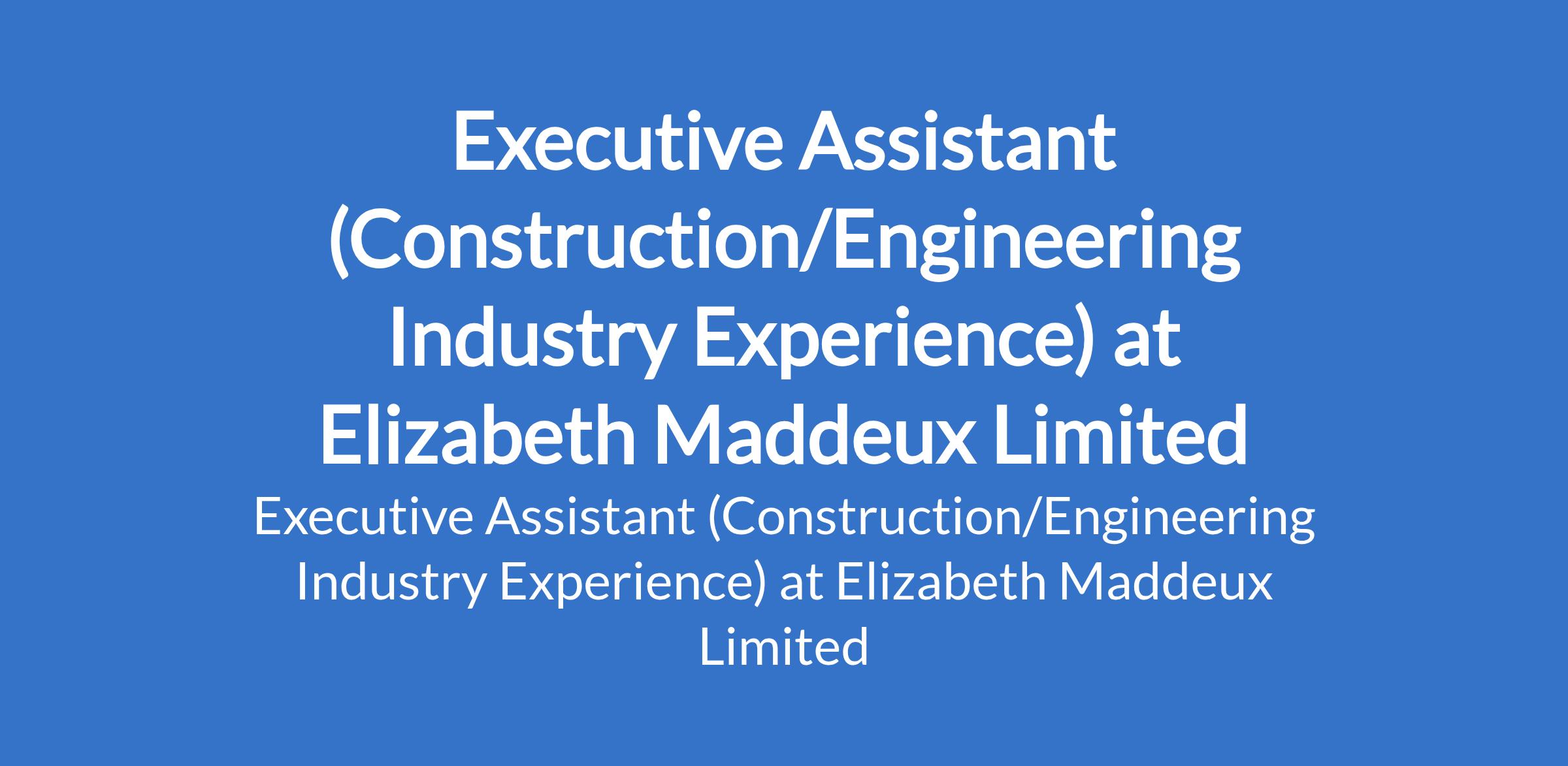 Elizabeth Maddeux Limited is recruiting to fill the position of: Executive Assistant (Construction/Engineering Industry Experience). The position is located in Ikeja, Lagos State. Salary: N400,000 - N500,000 monthly. Interested candidates should possess a Bachelors Degree in Business Administration, Management, Engineering Management, Marketing, or related discipline with 4 8 years of experience supporting senior executives, preferably within construction, engineering, manufacturing, or industrial distribution companies.