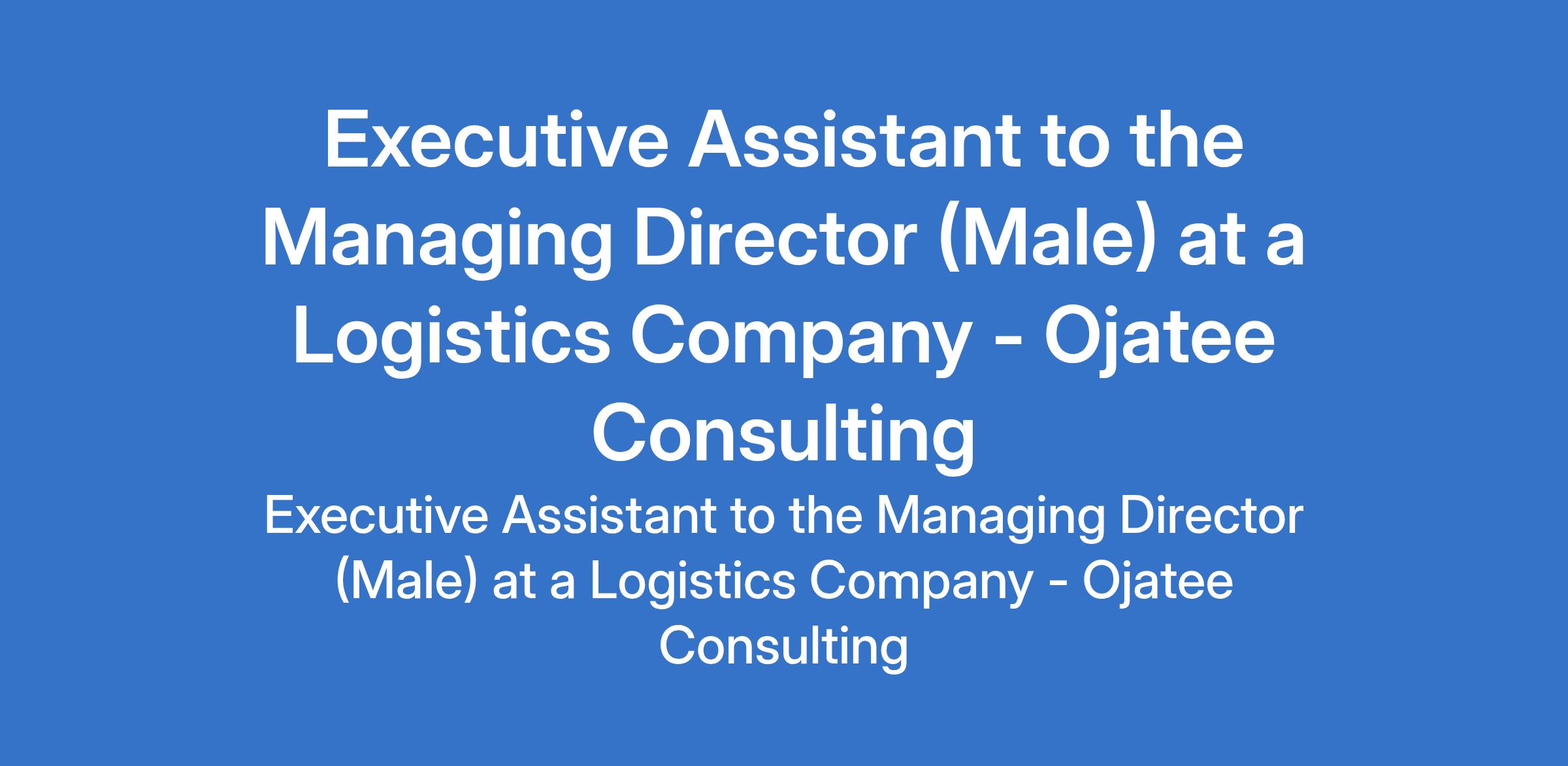 Ojatee Consulting - Our client in the Logistics indutsry is recruiting to fill the position of: Executive Assistant to the Managing Director (Male). The position is located in Ikoyi, Lagos State. Salary: N500,000 - N800,000 monthly. Interested candidates should possess a relevant qualification with 3 - 5 years experience supporting a C-Suite leaderand demonstrated track record of managing complex calendars and confidential work.