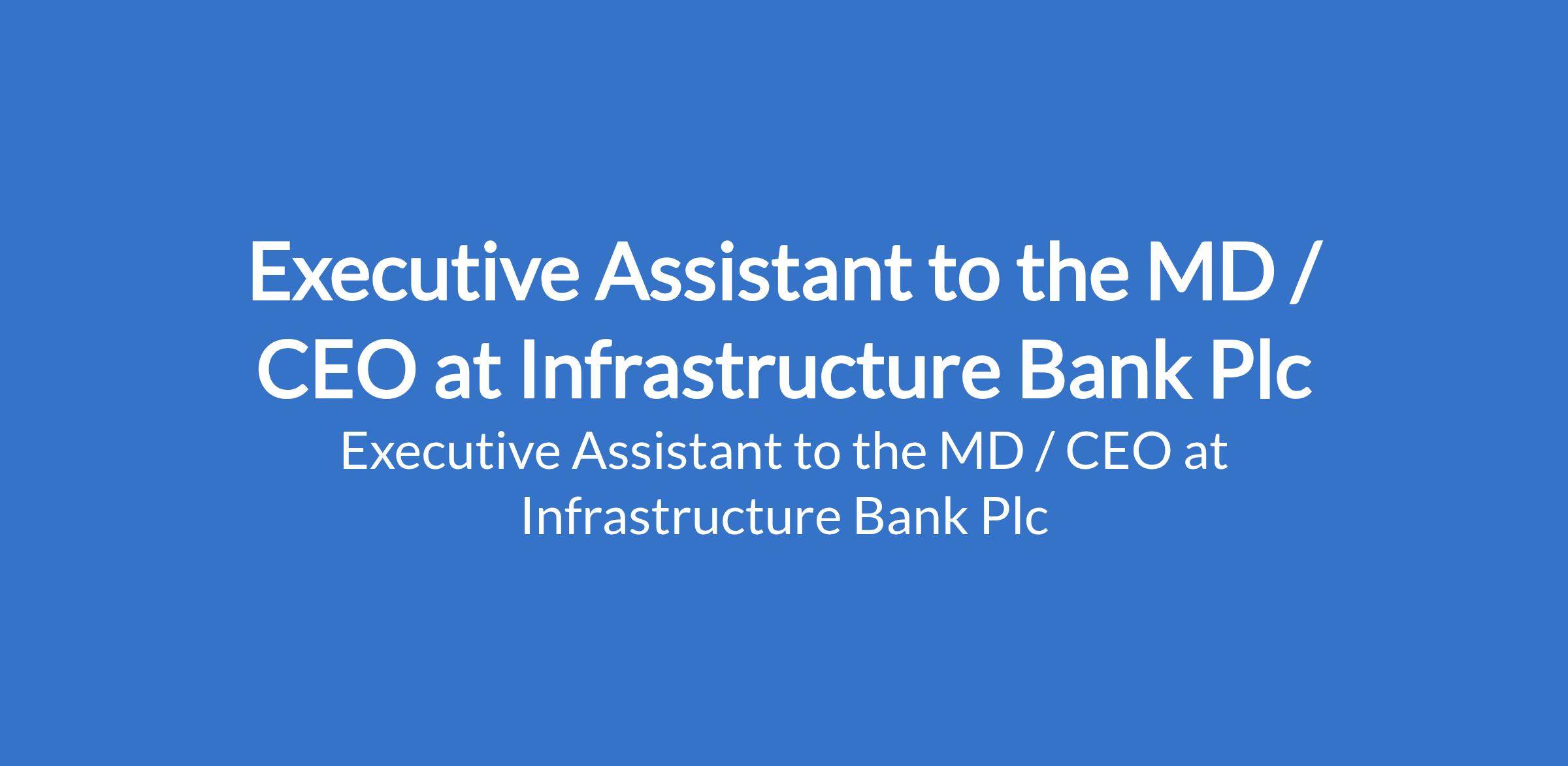 Infrastructure Bank Plc is recruiting to fill the position of: Executive Assistant to the MD / CEO. The position is located in Abuja. Interested candidates should possess a Bachelors Degree in Business Administration, Social Sciences, or related fields with a minimum of 5 years experience supporting senior executives.