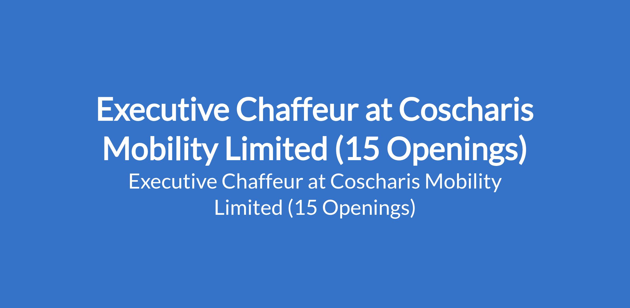 Coscharis Mobility Limited is recruiting to fill the position of: Executive Chaffeur. The position is located in Ikeja, Gbagada, Agege, Ogba, Yaba, Ojuelegbe, Surulere, Onipanu, Shomolu, Fadeyi, Onike, Sabo, Maryland, Oshodi, and Mushin - Lagos State. Salary: N100,000 - N120,000 monthly. Interested candidates should possess a Valid drivers and Lasdri licenses with a clean driving record, and must live at Yaba, Ojuelegbe, Surulere, Onipanu, Shomolu, Fadeyi, Onike, or Sabo.