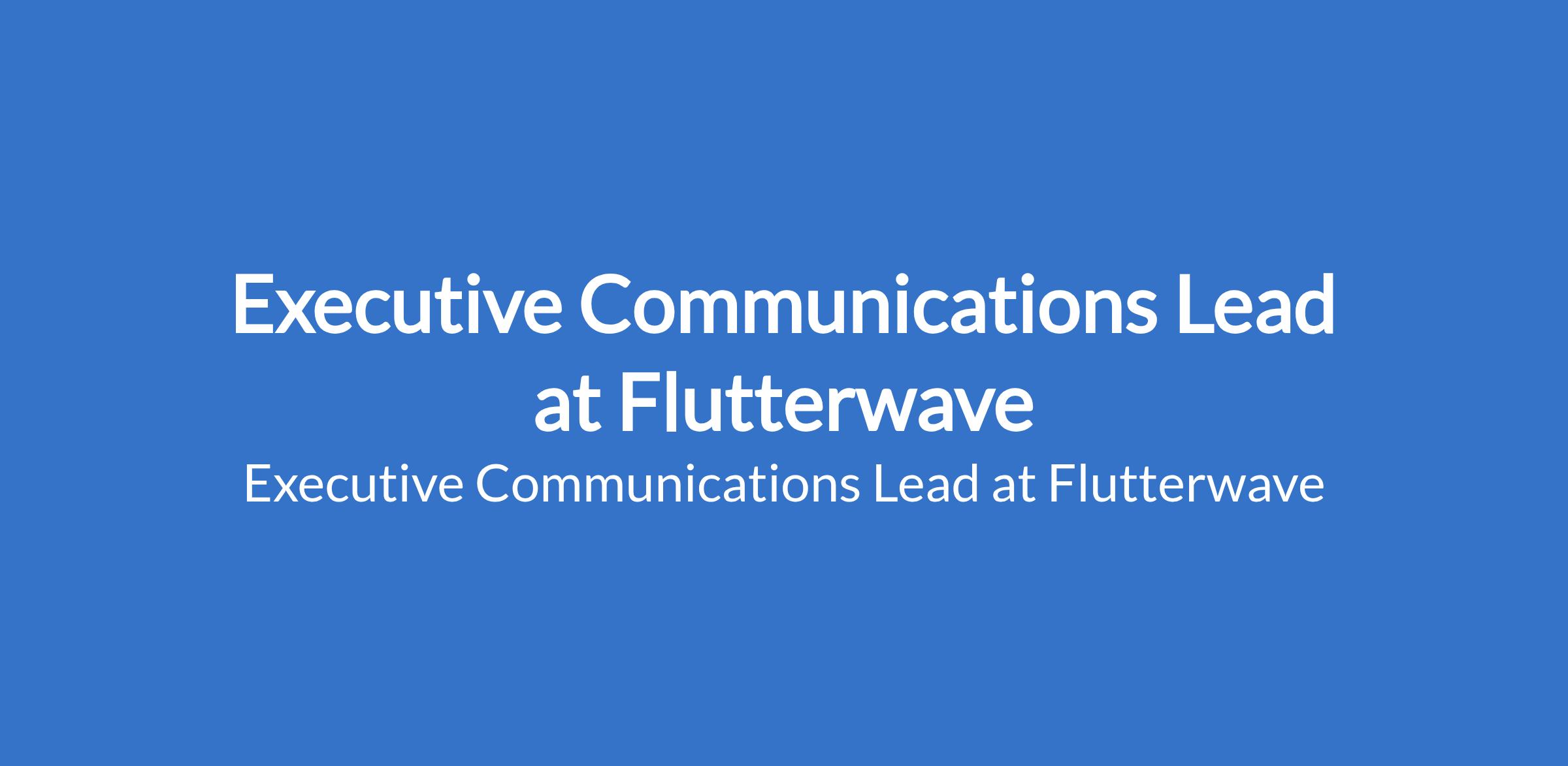 Flutterwave is recruiting to fill the position of: Executive Communications Lead. The position is located in Lekki, Lagos State. Interested candidates should possess a Bachelors Degree in Communications, Public Relations, Journalism, Marketing, Business, or a related field with 7+ years of experience in executive communications, corporate communications, brand strategy, public relations, or related rolespreferably within fintech, technology, or high-growth environments.