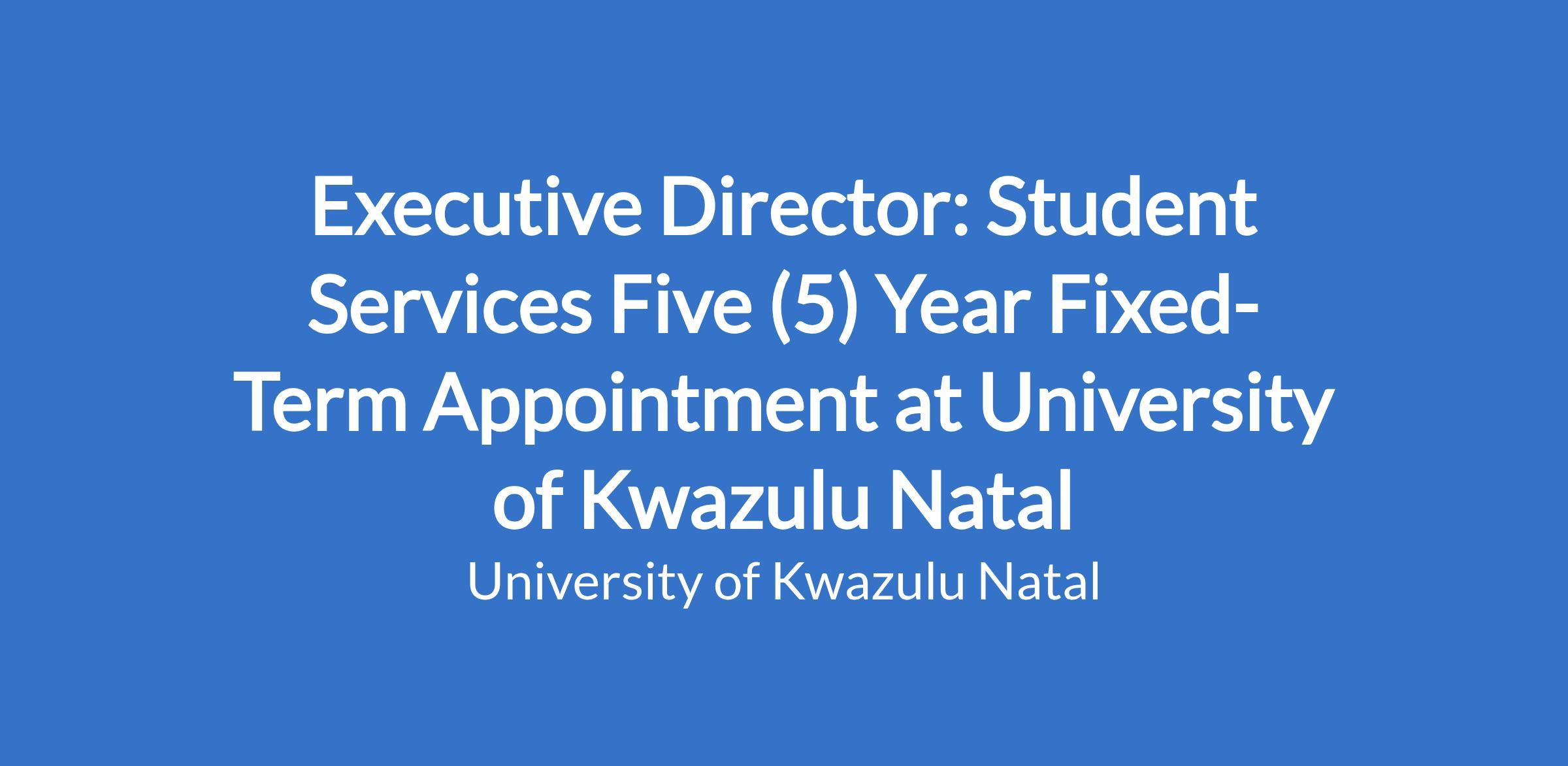 The role of Executive Director (Student Services) will be to oversee the full student life cycle at the University of KwaZulu-Natal, leading on relevant areas including the whole of the student pastoral journey, including student residential life, extracurricular engagement, and student innovations