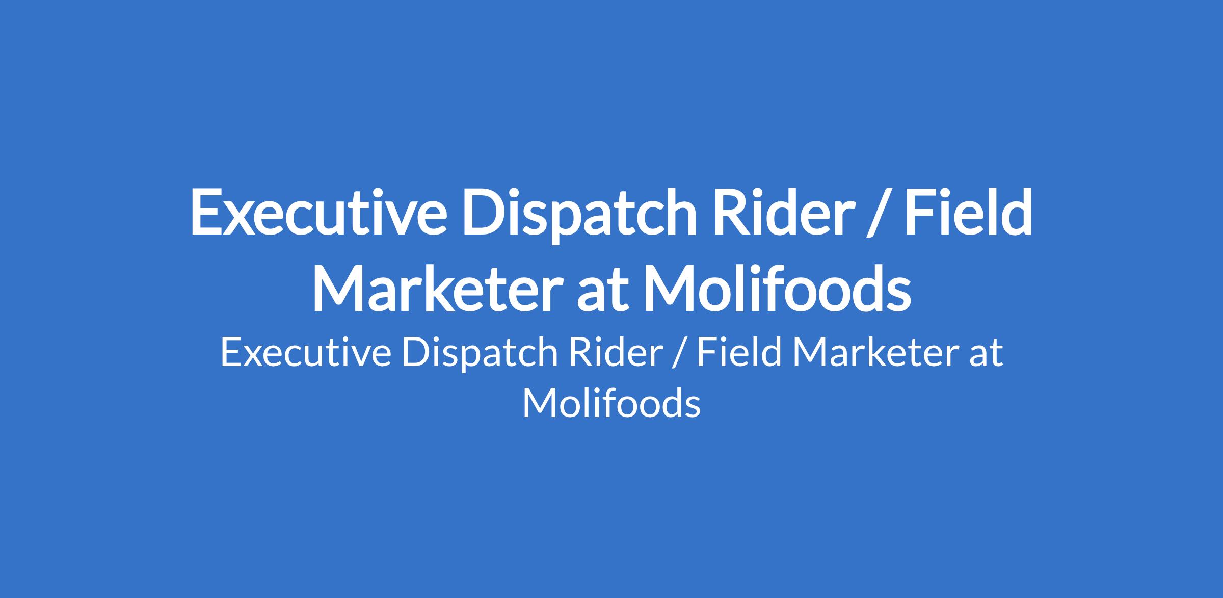 Molifoods is recruiting to fill the position of: Executive Dispatch Rider / Field Marketer. The position is located in Gwarimpa, Abuja (FCT). Interested candidates should possess a Diploma or Degree in Marketing or any field of study with Previous experience as a dispatch rider or marketing, plus the ability to break into challenging terrains with marketing of packaged food products.