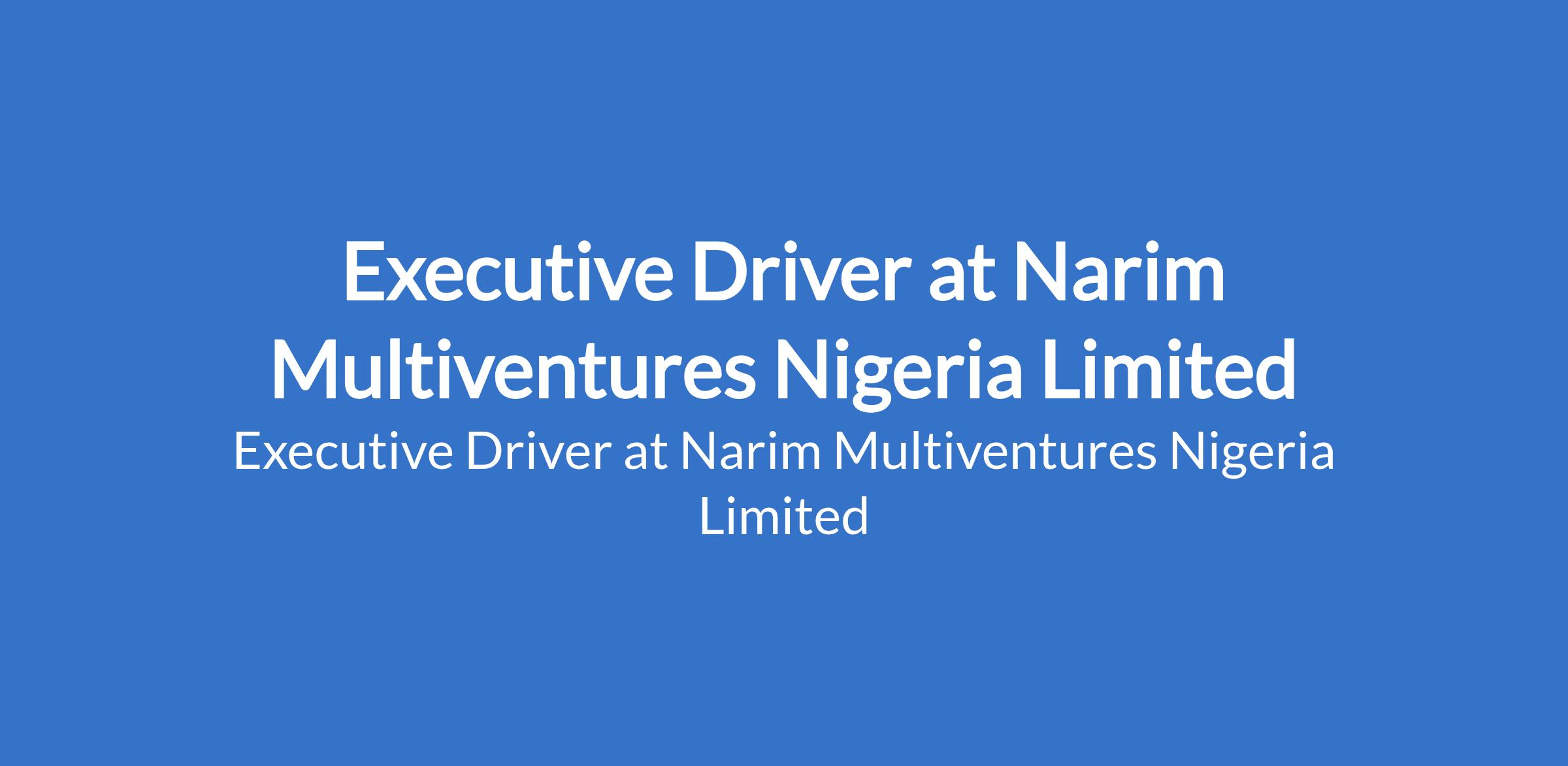 Narim Multiventures Nigeria Limited is recruiting to fill the position of: Executive Driver. The position is located in Anthony Village, Lagos State. Interested candidates should possess relevant qualifications with a minimum of 3 years of professional driving experience.